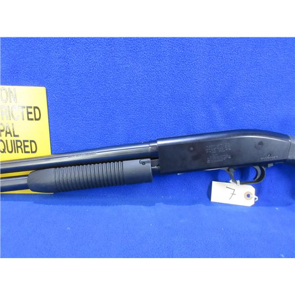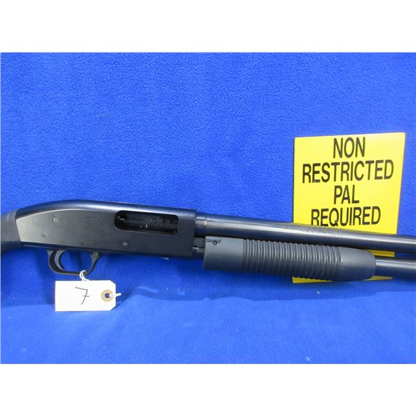 Non-Restricted - Mossberg Maverick 88 in 12 Ga. 2 3/4" & 3"- This is a pump action shotgun with tube magazine, action appears to be in good to very good working order. Barrel is 18 1/2", bore is good, black finish is good, has bead front sight, synthetic stock is good to very good, length of pull is 14", synthetic forearm is good to very good, rubber recoil pad good, comes with manual and a magazine plug. Ser # MV47404Y