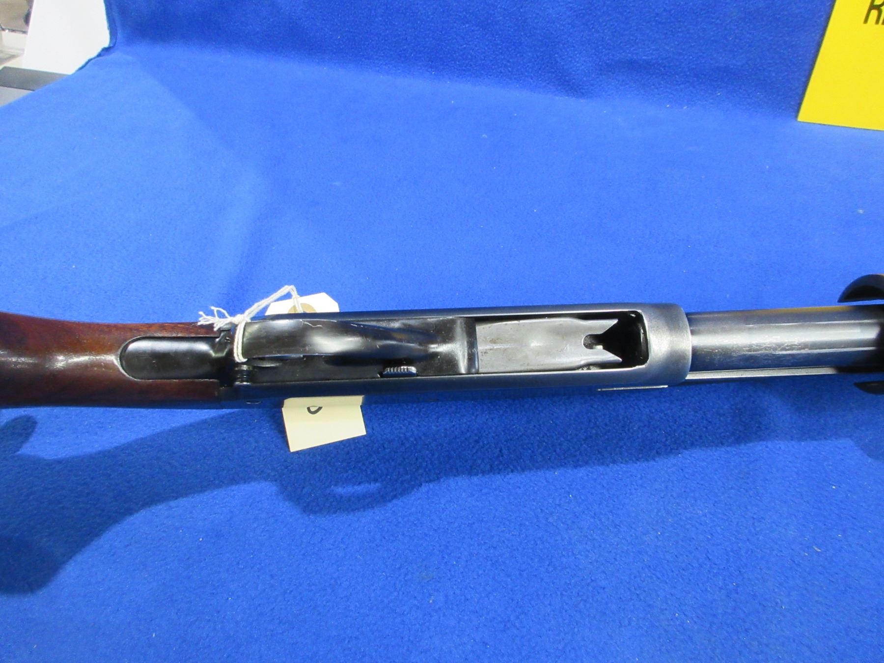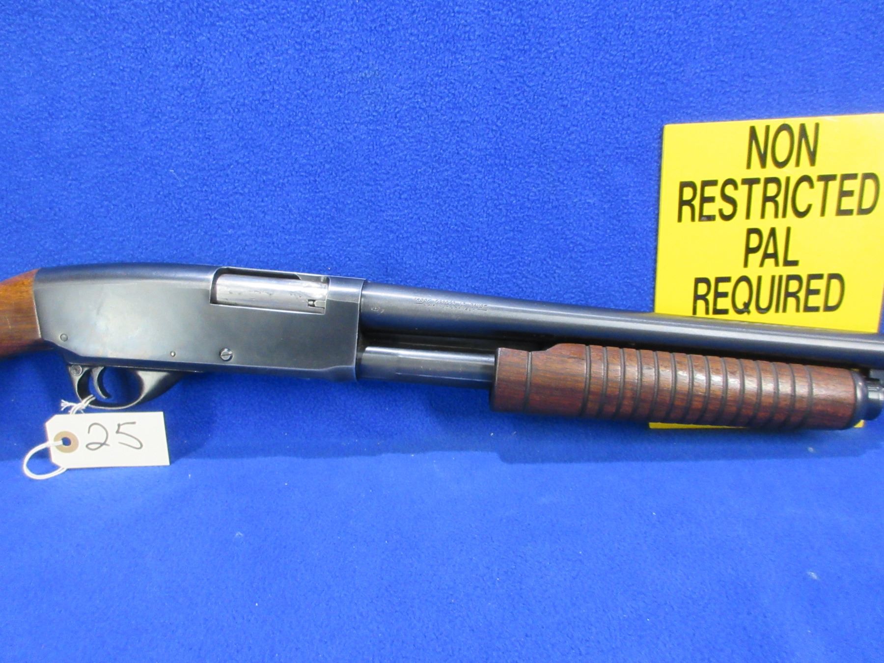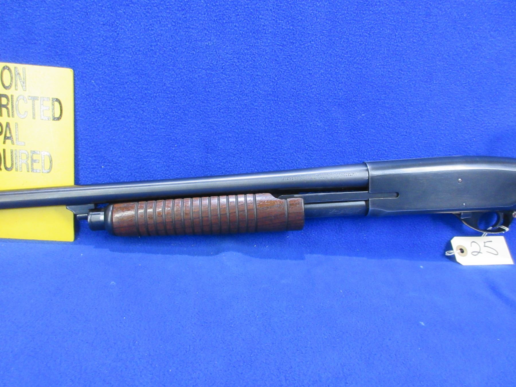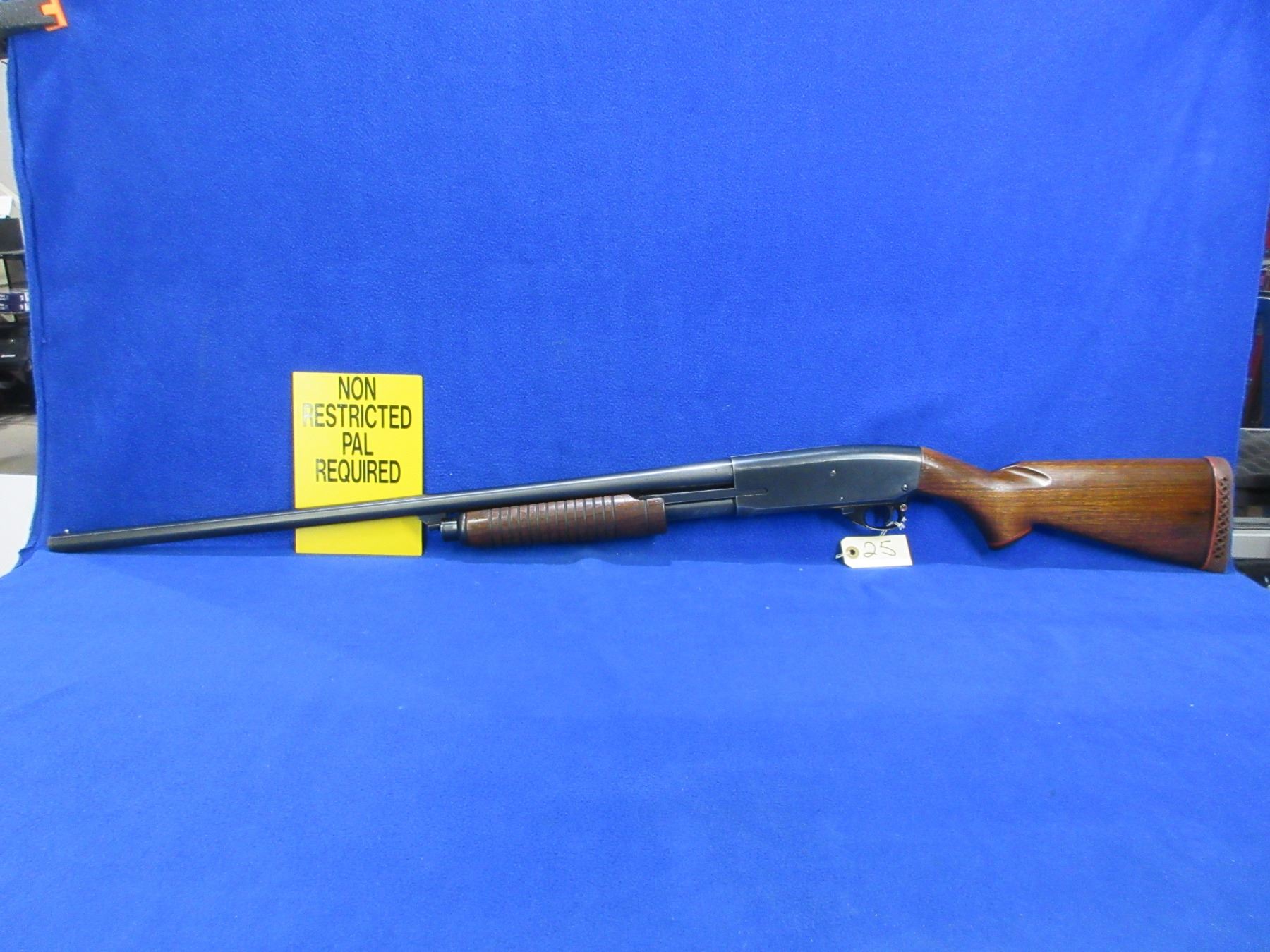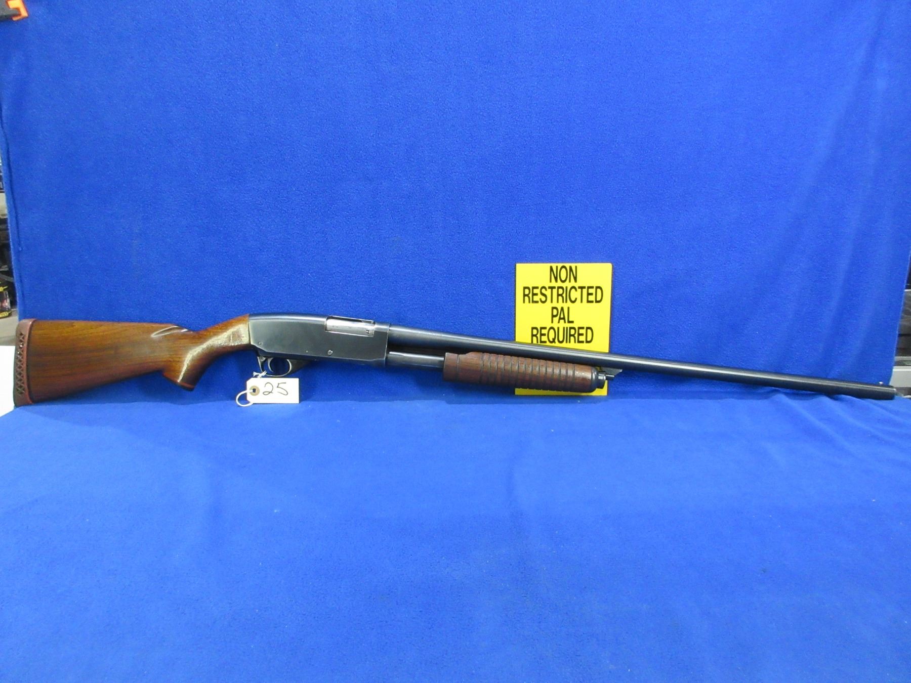 Non-Restricted - Stevens Model 77E in 12 Ga. 2 3/4" - This is a pump action shotgun with tube magazine, action appears to be in good to very good working order. Barrel is 28", bore is good, bluing is good, has bead front sight, stock is good with usage marks, length of pull is 13 1/2", forearm is good with usage marks, rubber recoil pad poor. Ser # None