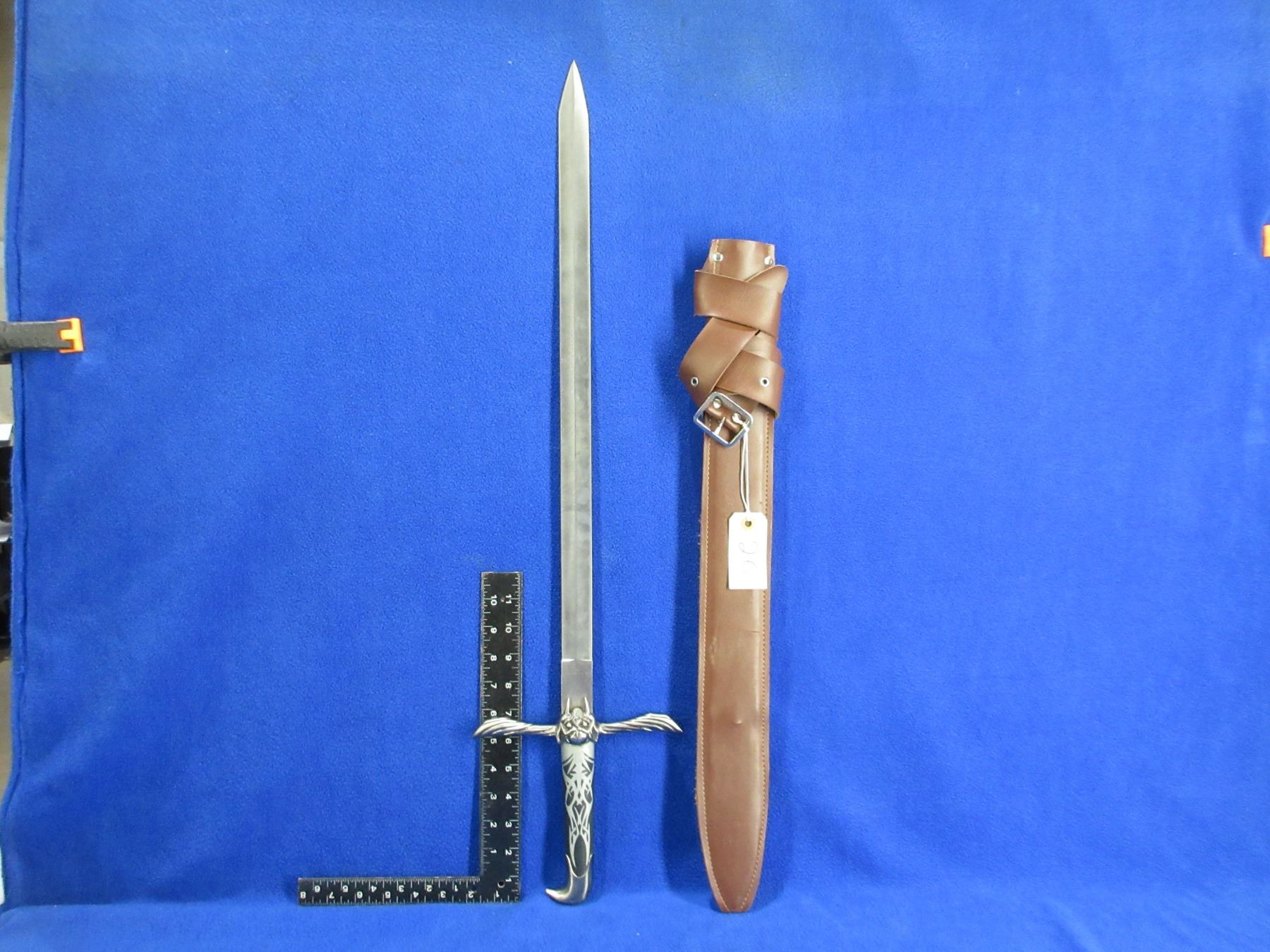 Lot 26 Sword with Leather Sheath - 440 Stainless - 22" Blade, 31" Total Length