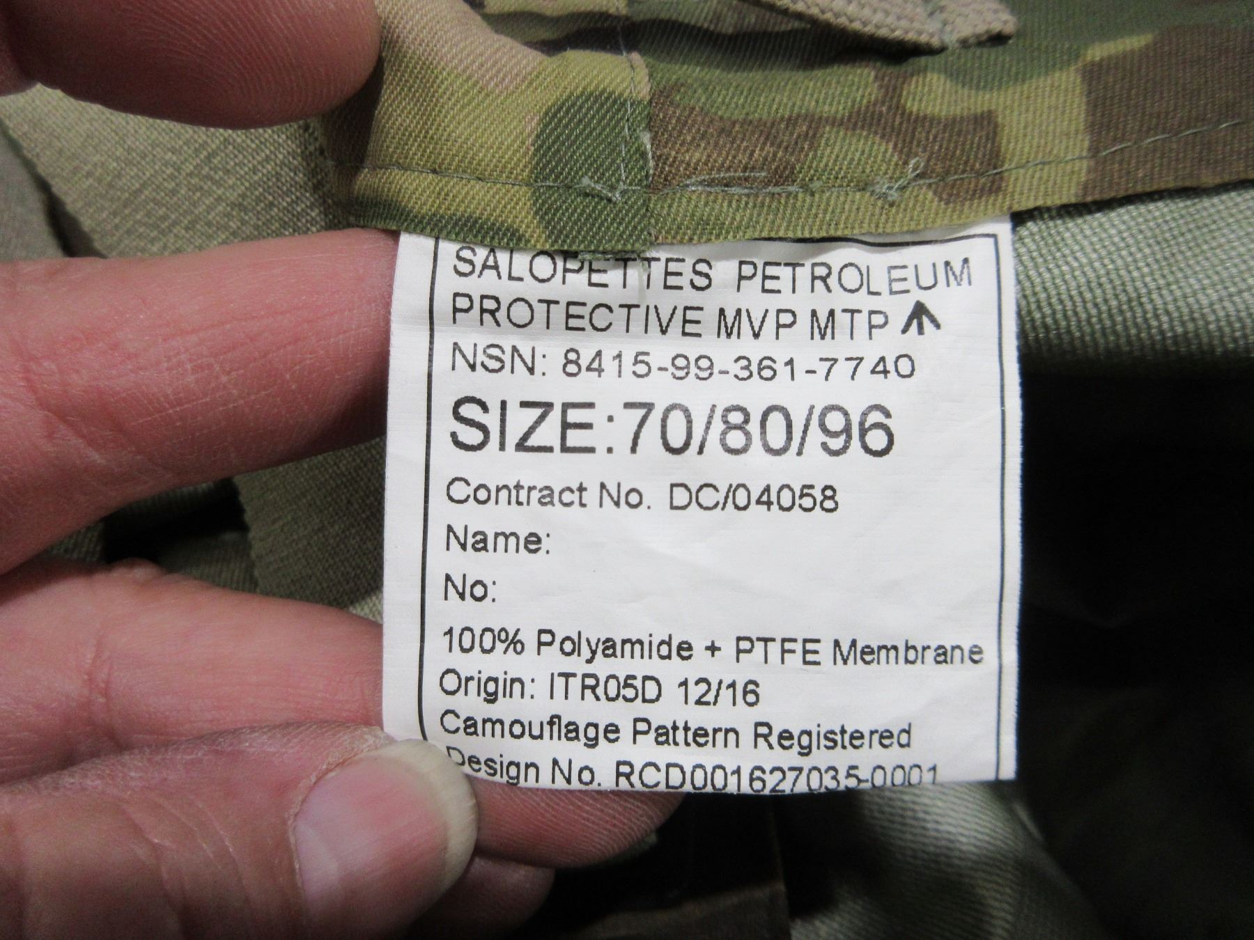 Camo Pants - Waist 28", Leg 31" & Large Camo Mitten Covers - Pants are Nato Size 70/80/96