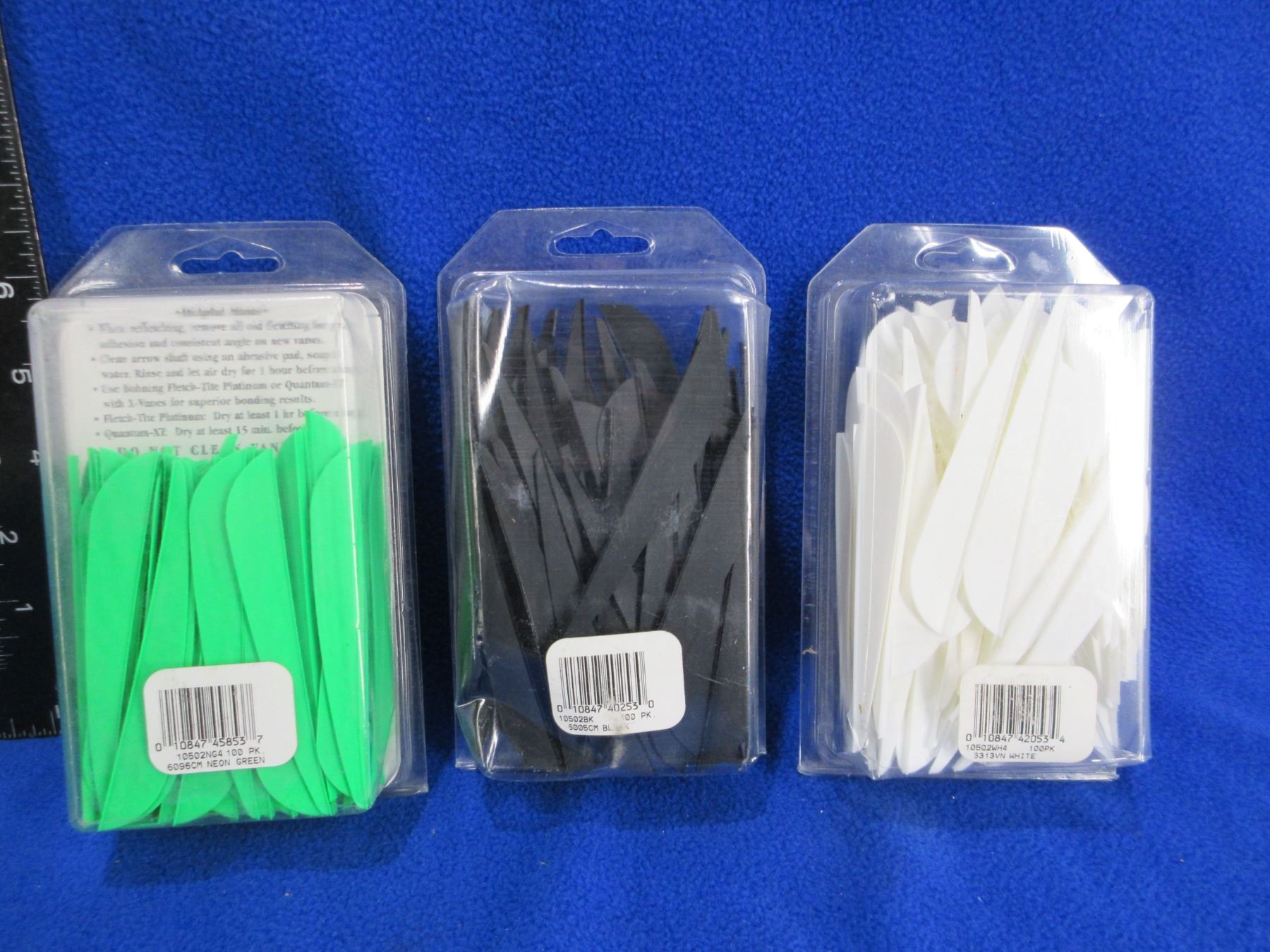 NEW - 3 Packages of Fletches - Green 100, Black 88, White 94