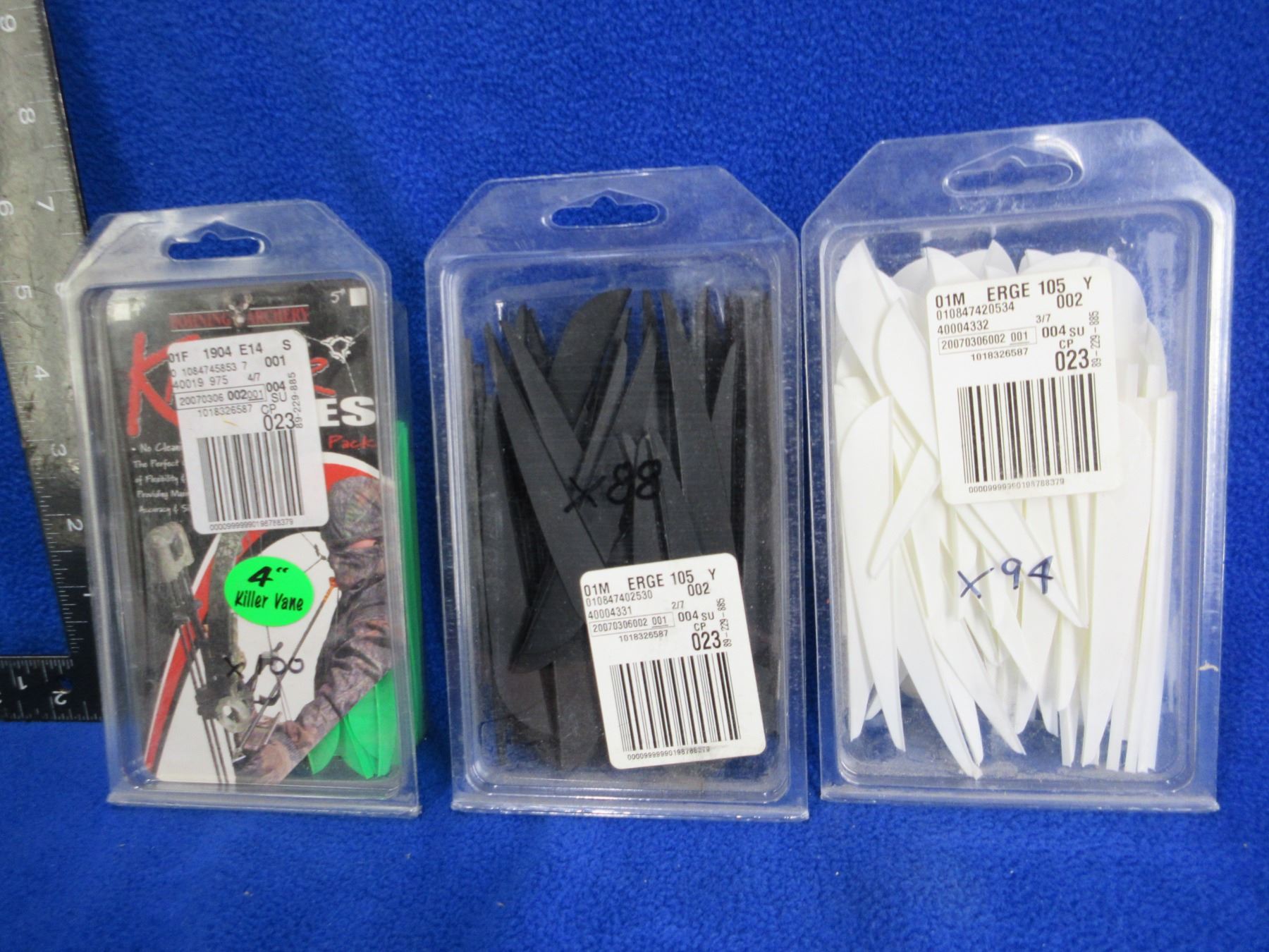 Lot 73 NEW - 3 Packages of Fletches - Green 100, Black 88, White 94