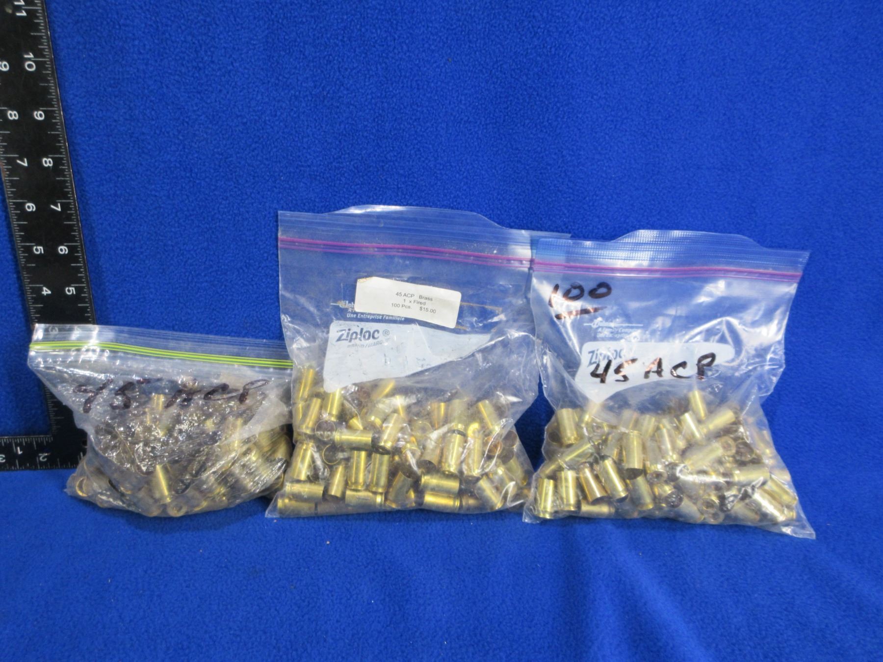 Lot 78 Brass Only - 45 Auto Unprimed - 3 Bags of 100