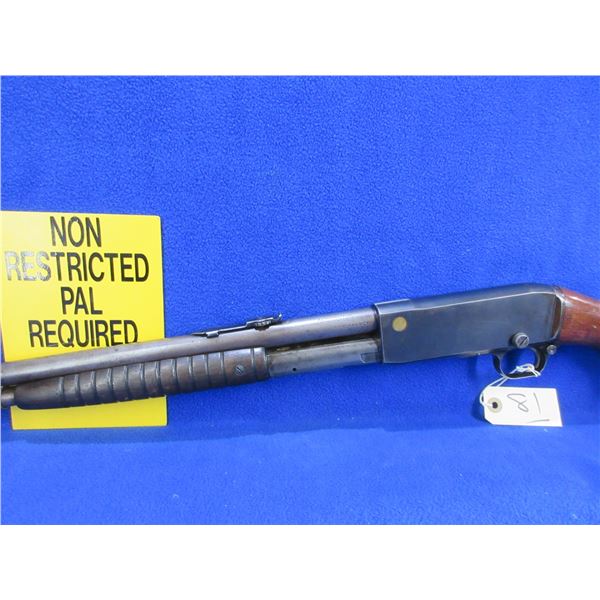 Non-Restricted - Remington Model 14 1/2 in 44 Rem or 44 WCF - This is a very rare pump action rifle with tube magazine, action appears to be in good working order. Barrel is 22 1/2", rifling is good, bluing is fair to good on the action but gone on the barrel and tube magazine, has both sights, stock has nice grain and is good for age with usage marks and a scrape on the right side, forearm is good for age with usage marks , length of pull is 14", rubber recoil pad poor. Ser # 19866