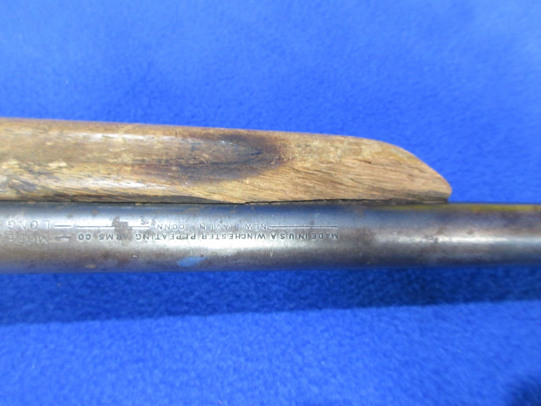 Non-Restricted - Winchester Model 67 in 22 S/L/LR - This is a single shot bolt action rifle, action appears to be in working order. Barrel is 27", rifling is good to very good, bluing is mostly gome and has rust and pitting, has both sights, stock is good for age with many usage marks and a chip on the front left side of the forearm, length of pull is 15", butt plate missing. Ser # None