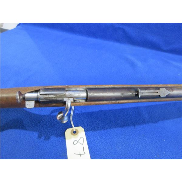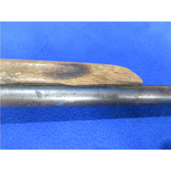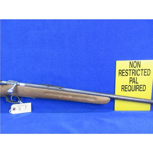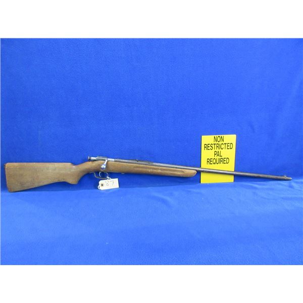 Non-Restricted - Winchester Model 67 in 22 S/L/LR - This is a single shot bolt action rifle, action appears to be in working order. Barrel is 27", rifling is good to very good, bluing is mostly gome and has rust and pitting, has both sights, stock is good for age with many usage marks and a chip on the front left side of the forearm, length of pull is 15", butt plate missing. Ser # None