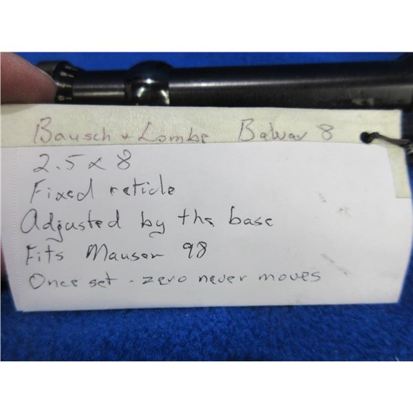 Bausch & Lomb BALvar 8 2.5-8 Scope - Appears Clear, Standard Reticle - Comes with Buehler Base and 1" Rings - Fits Mauser 98