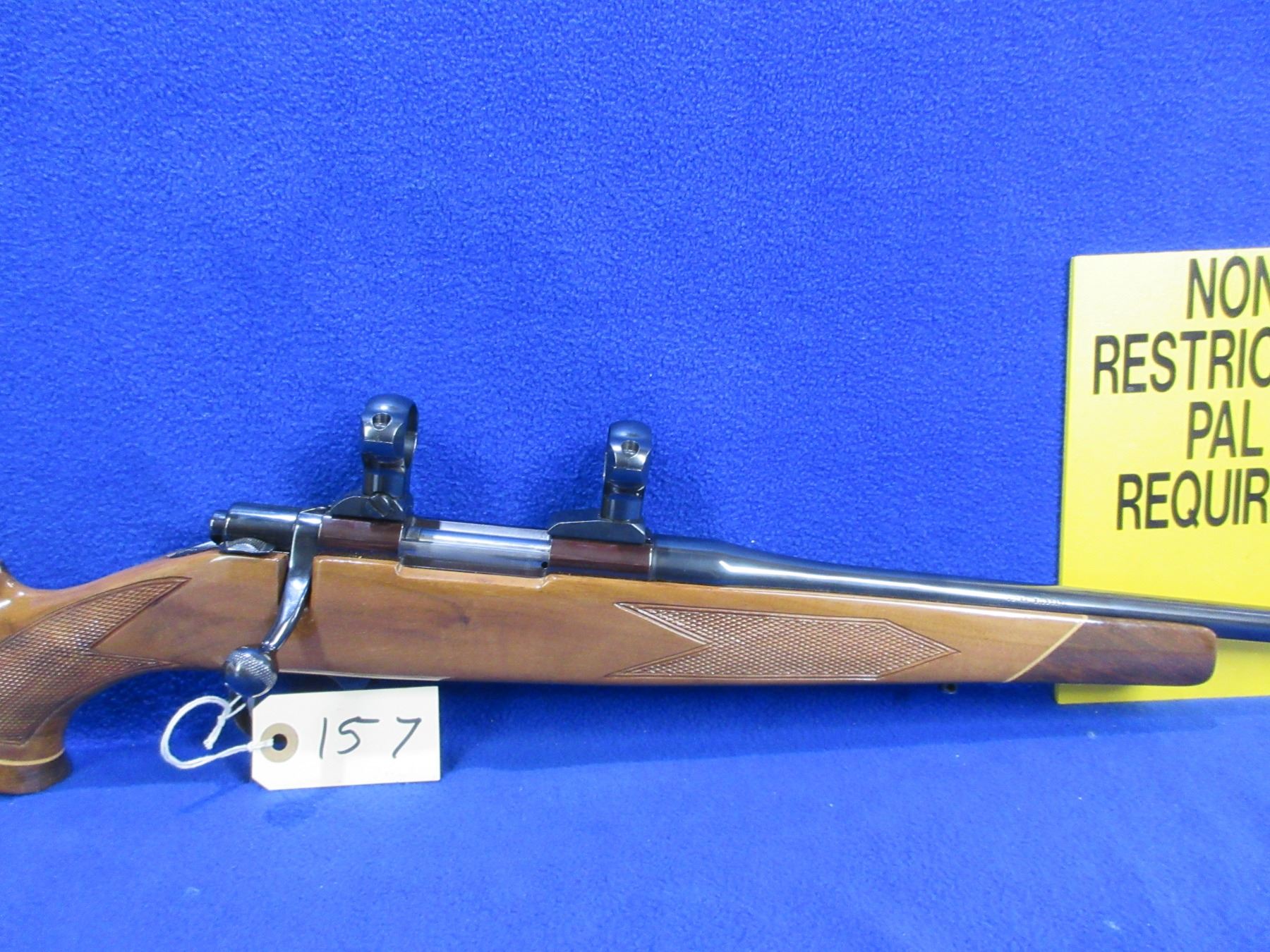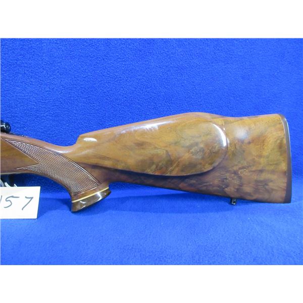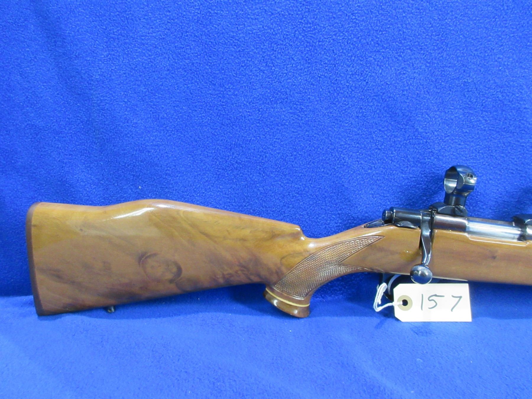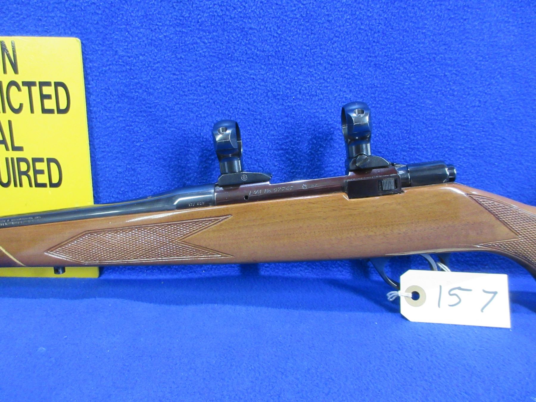 Non-Restricted - Harrington & Richardson Model L461 in 17/223 Rem. a wildcat cartridge - This is a bolt action rifle with floor plate magazine, action appears to be in very good working order. Barrel is 20", rifling is very good, bluing is very good, has no sights but has 1" Redfield rings, stock is good to very good as it has what looks like finish cracking on left side of toe and a couple of minor handling marks, length of pull is 13 3/4", butt plate good, comes with swivel studs. Ser # 97747
