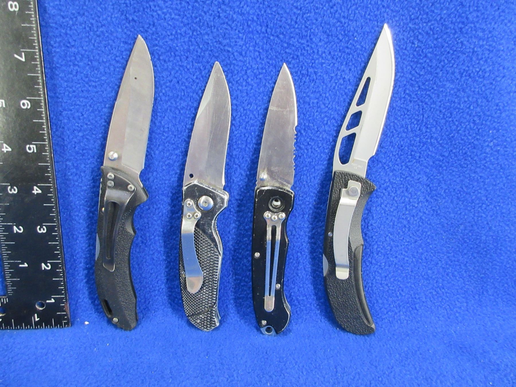 4 Folding Lock Blade Pocket Knives - Buck, Gerber, China & Unknown
