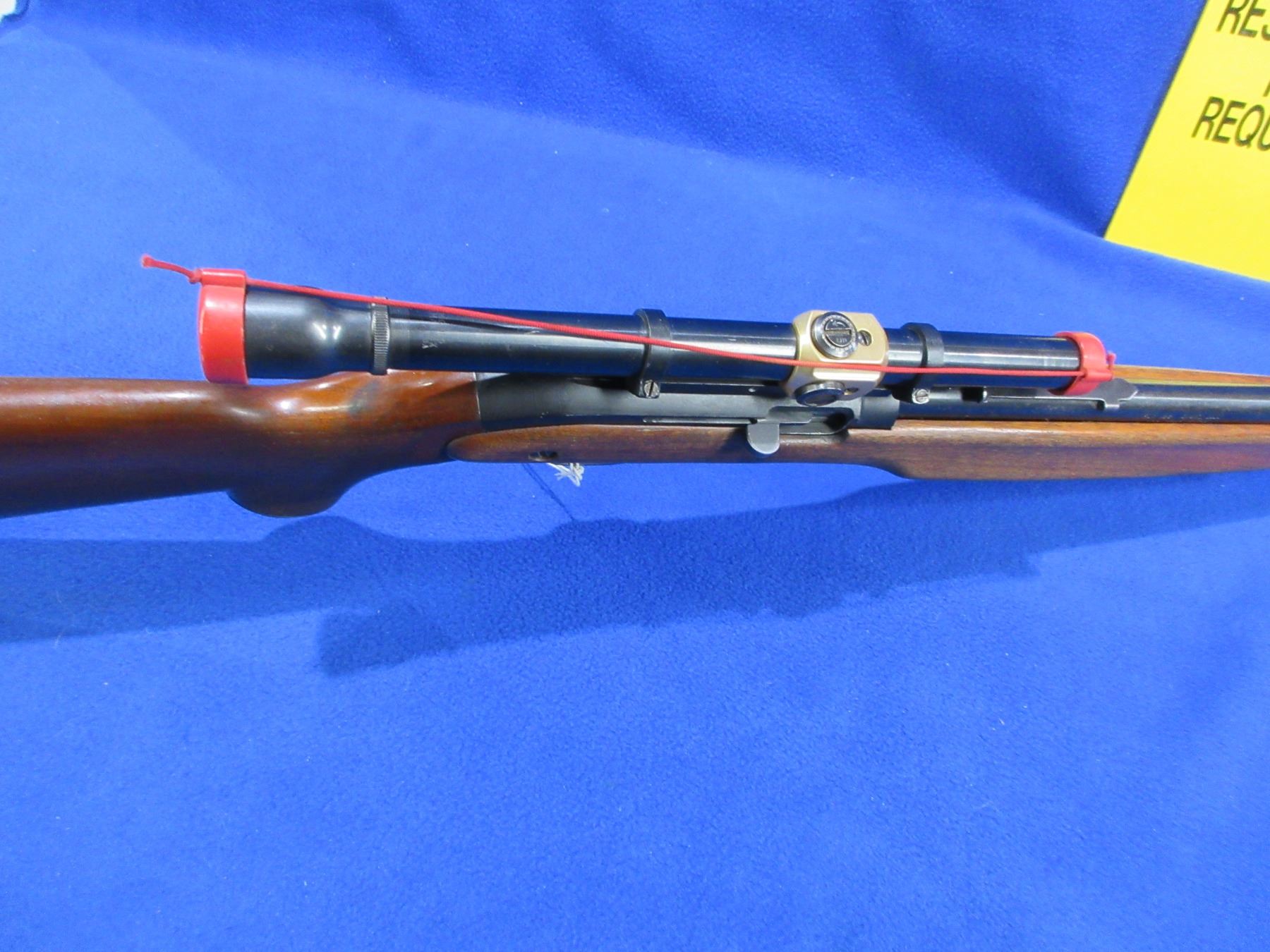 Non-Restricted - JC Higgins Model 31 in 22 S/L/LR - Marked Sears Roebuck & Co., this is a semi-auto rifle with tube magazine, action appears to be in good to very good working order. Barrel is 24", rifling is good to very good, bluing is good with some light pitting, has both sights and vintage JC Higgins Rifleman 4x scope with lens covers - standard reticle - appears clear, stock with retractable sling and forearm are good to very good with usage marks, length of pull is 14", butt plate good. Ser # None