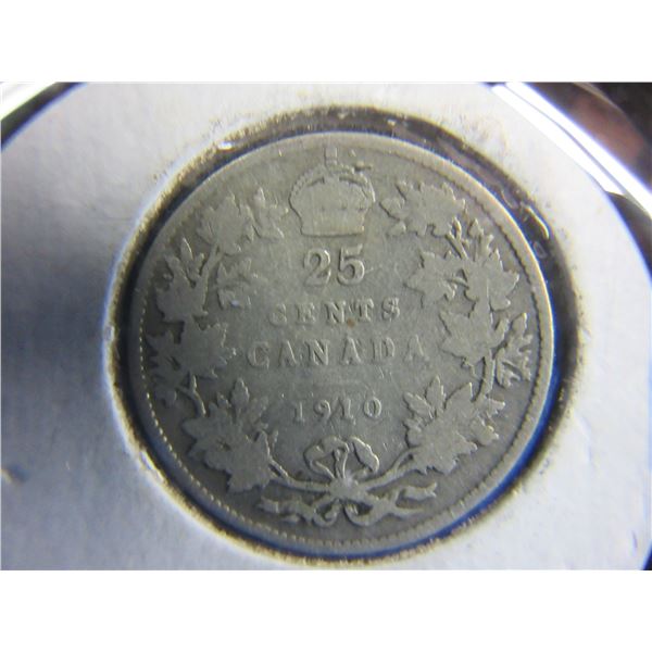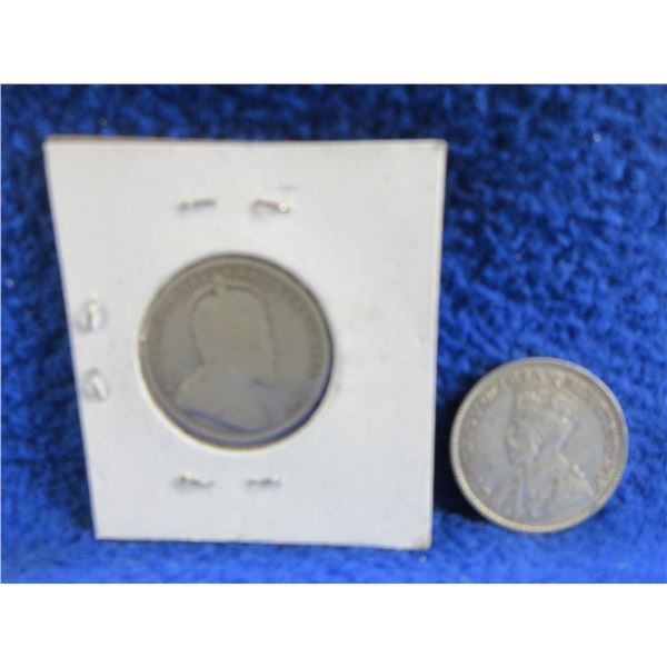 2 Canadian 25 Cent Coins - .925 Silver - 1910, 1919