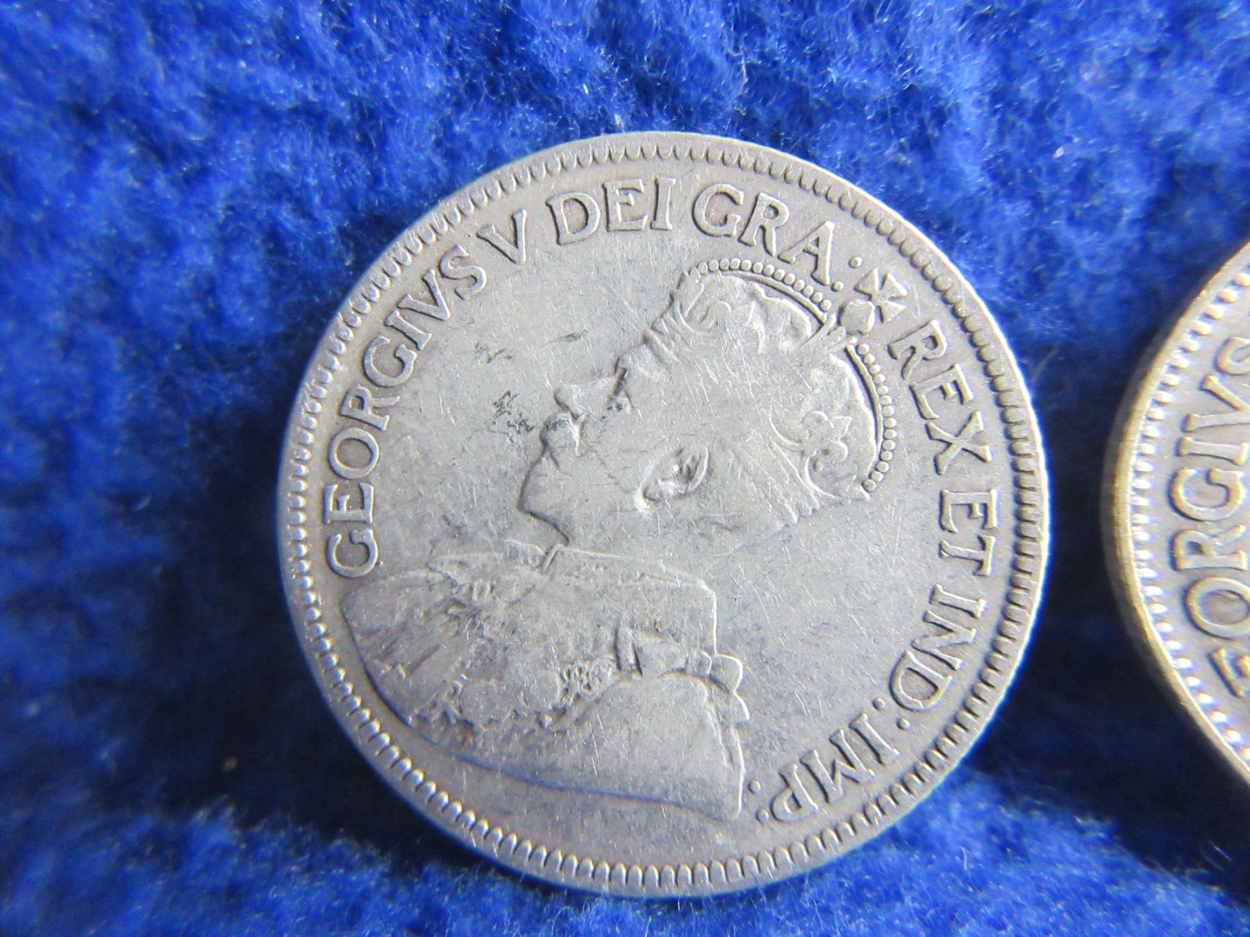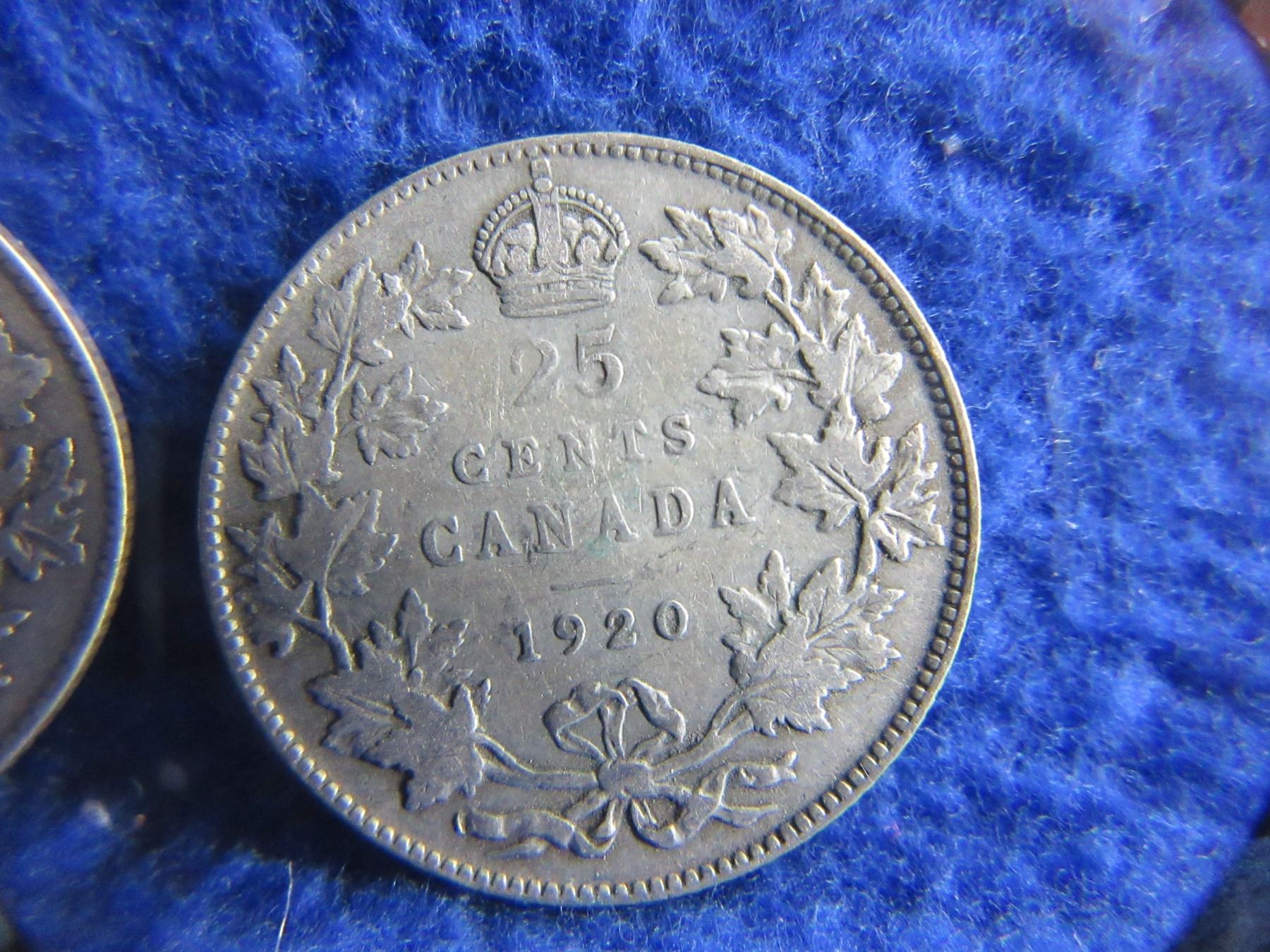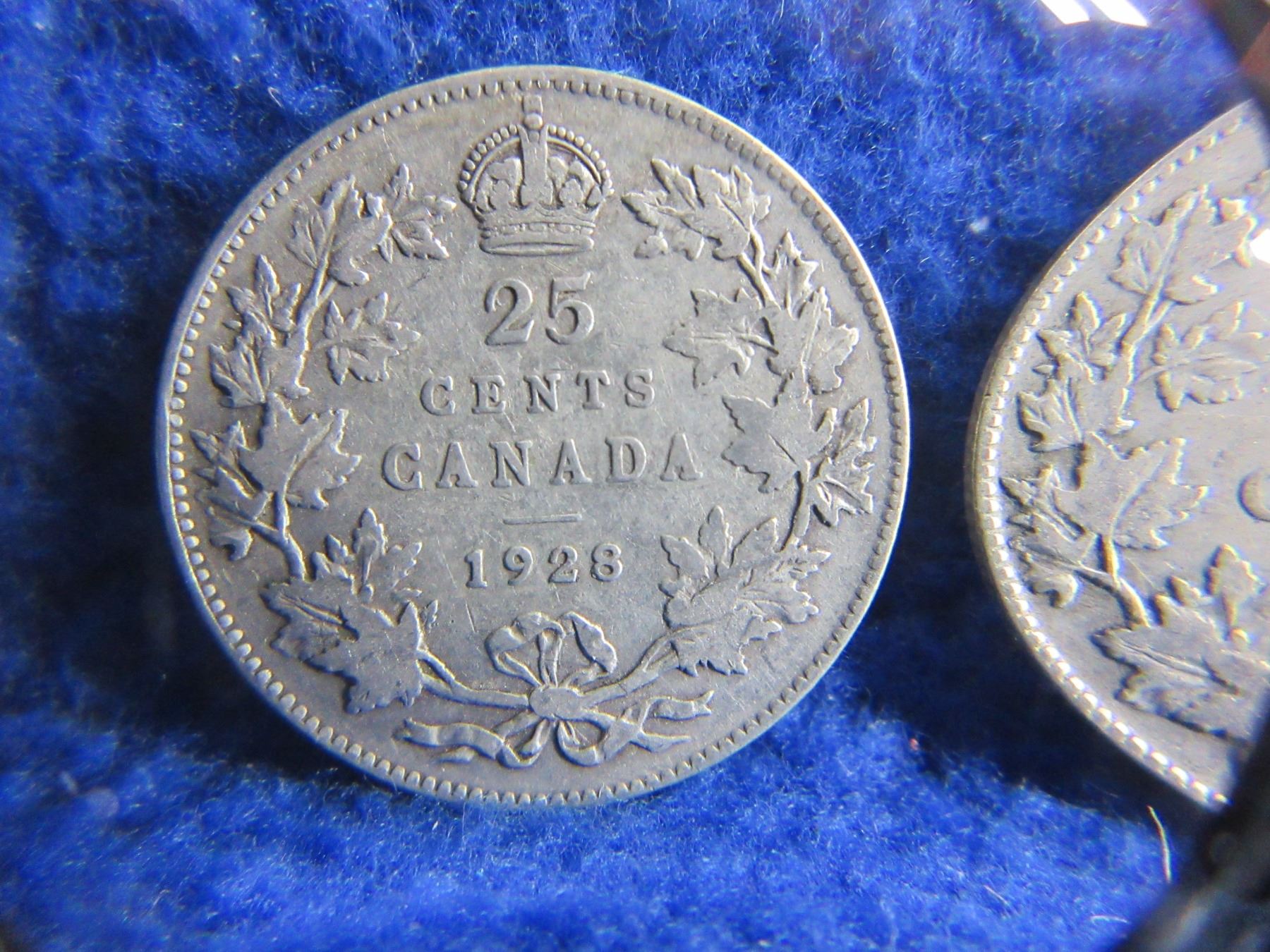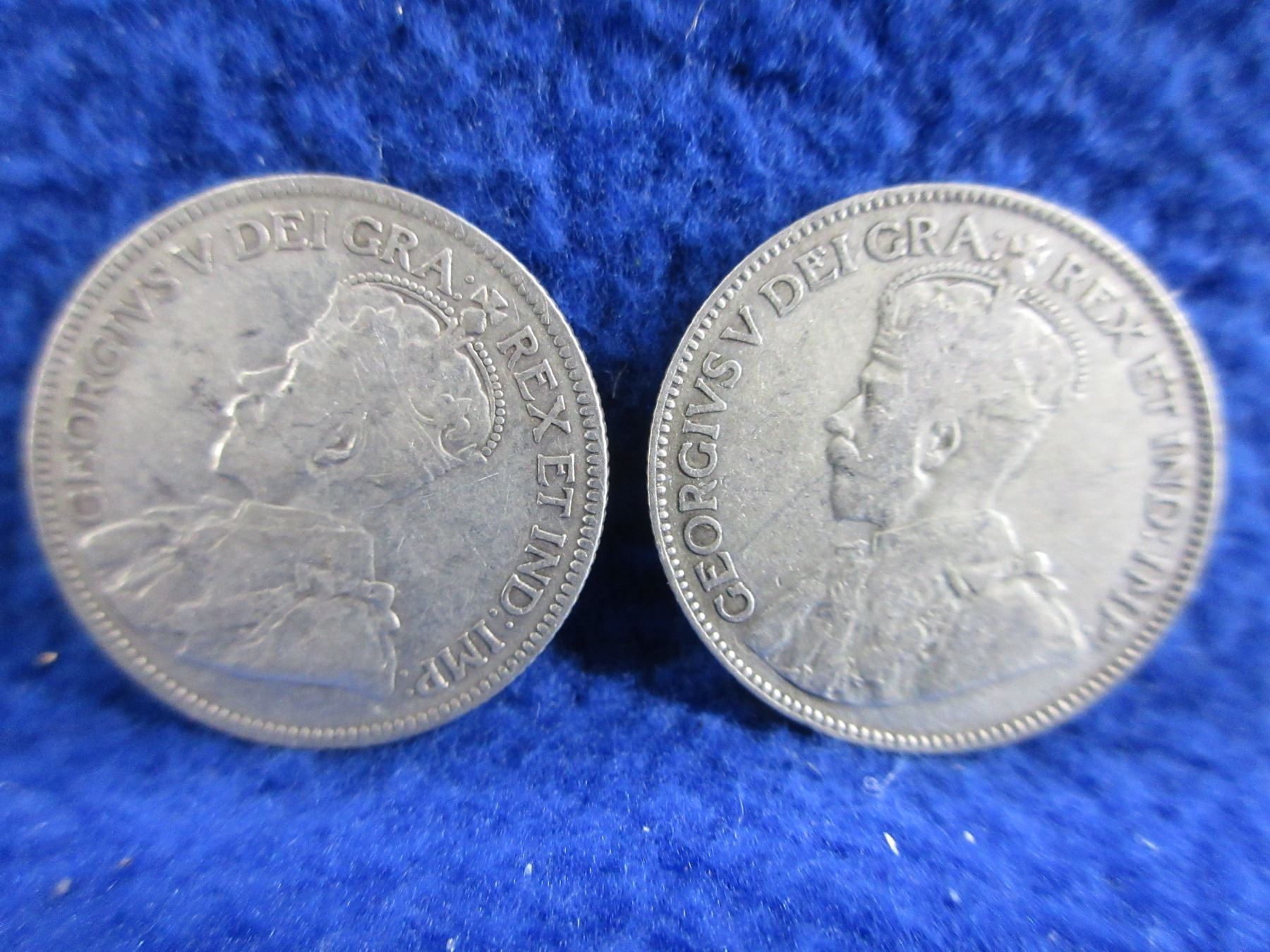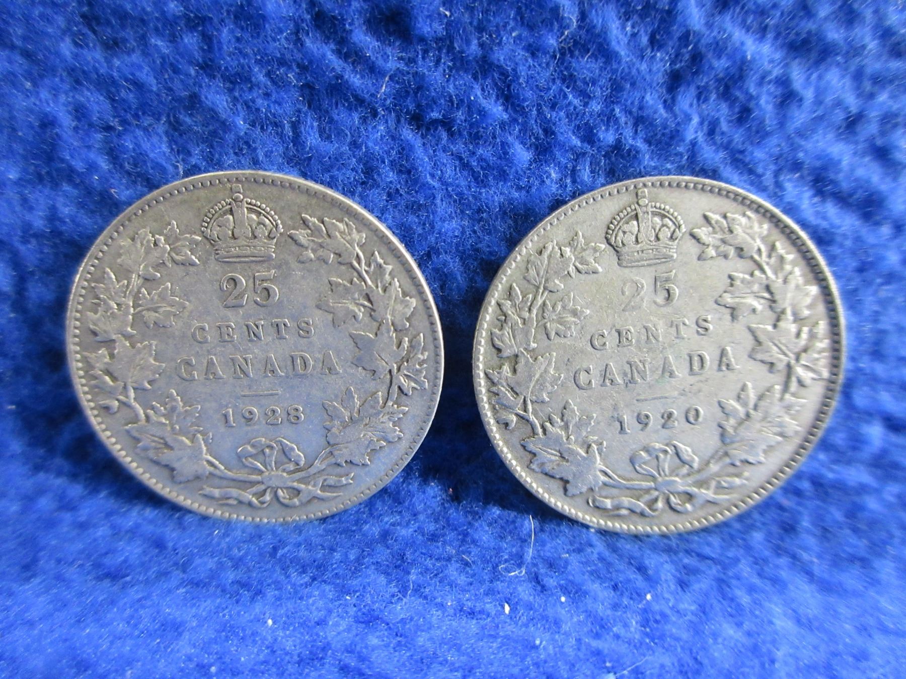 Lot 197 2 Canadian 25 Cent Coins - .800 Silver - 1920, 1928
