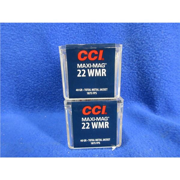 22 WMR 40gr TMJ CCI Maxi-Mag (Pick Up or Ship by UPS Only) Cartridges - 2 Sealed Boxes of 50