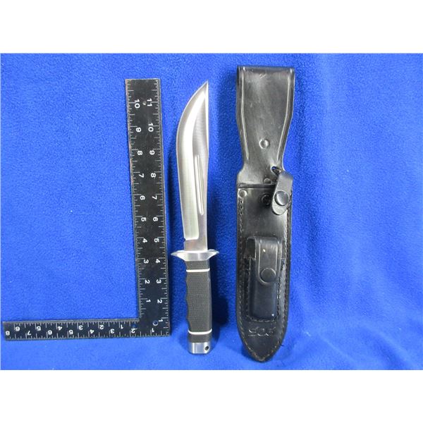 NEW - SOG Creed Fixed Blade Knife with Incorrect Sheath and Sharpening Stone - 7 1/2" Blade, 12" Total Length