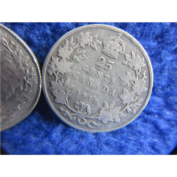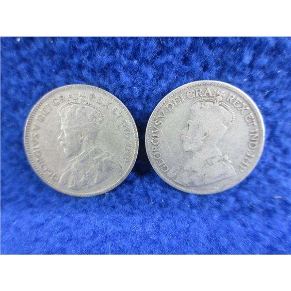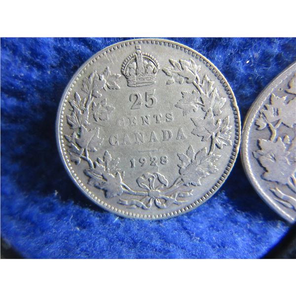 2 Canadian 25 Cent Coins - 1918 (.925 Silver), 1928 (.800 Silver)