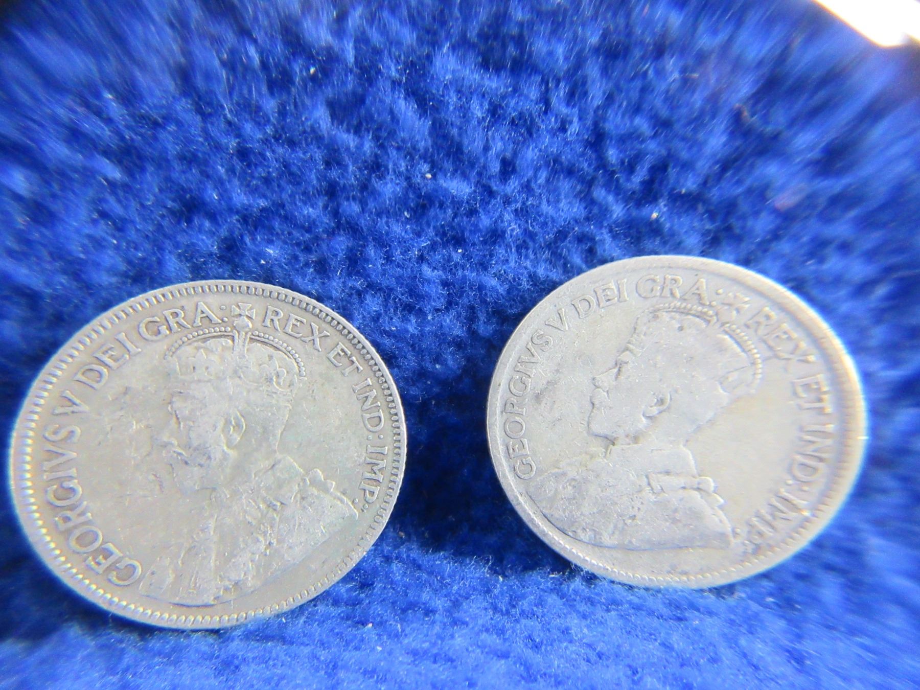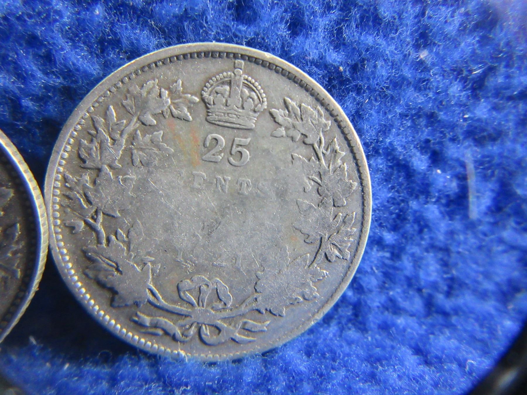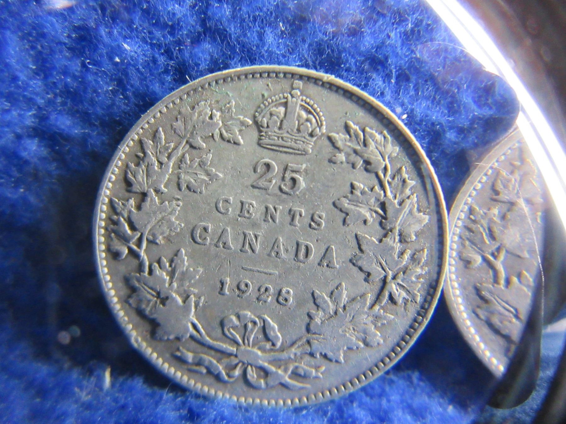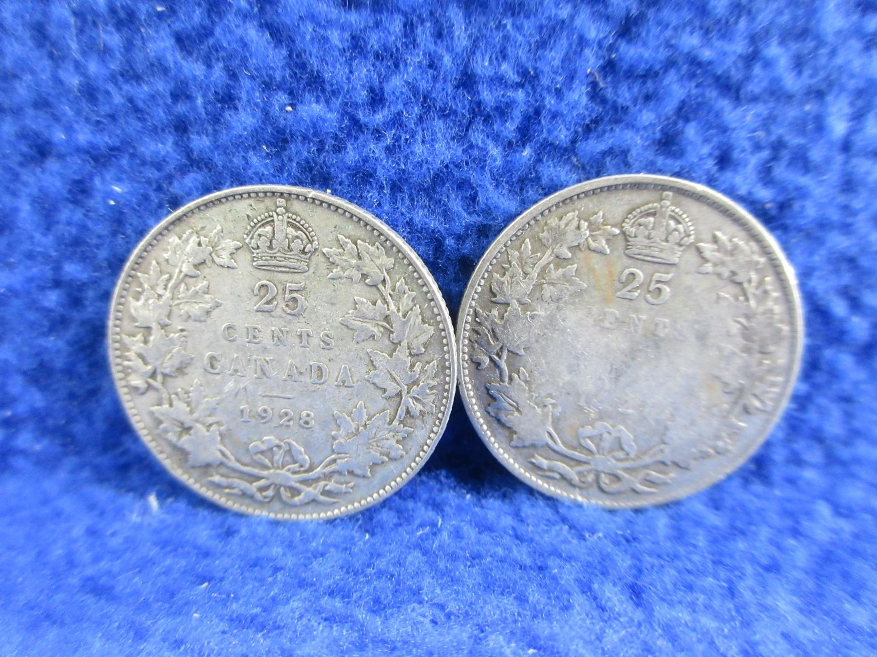 Lot 256 2 Canadian 25 Cent Coins - .800 Silver - 1921, 1928