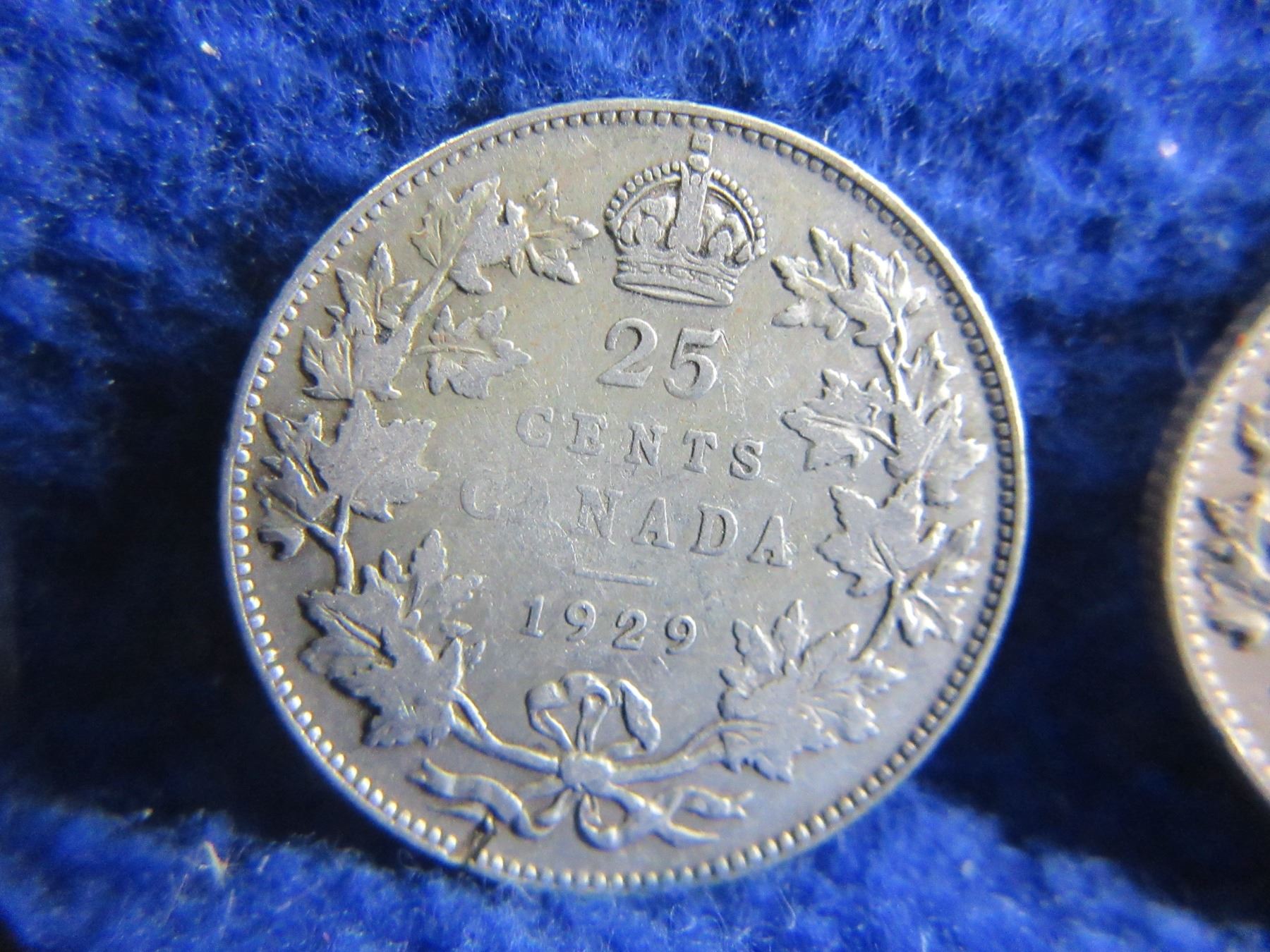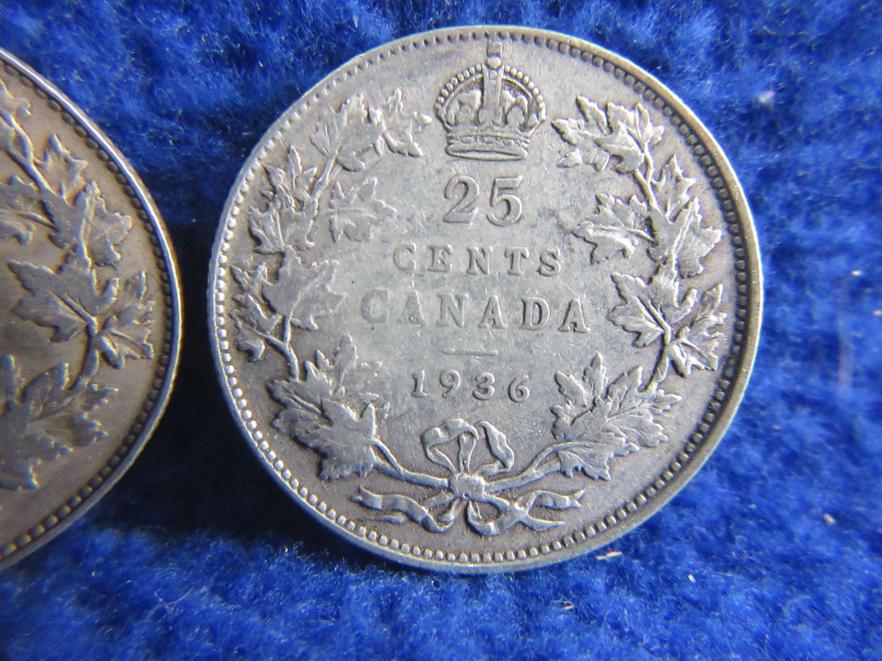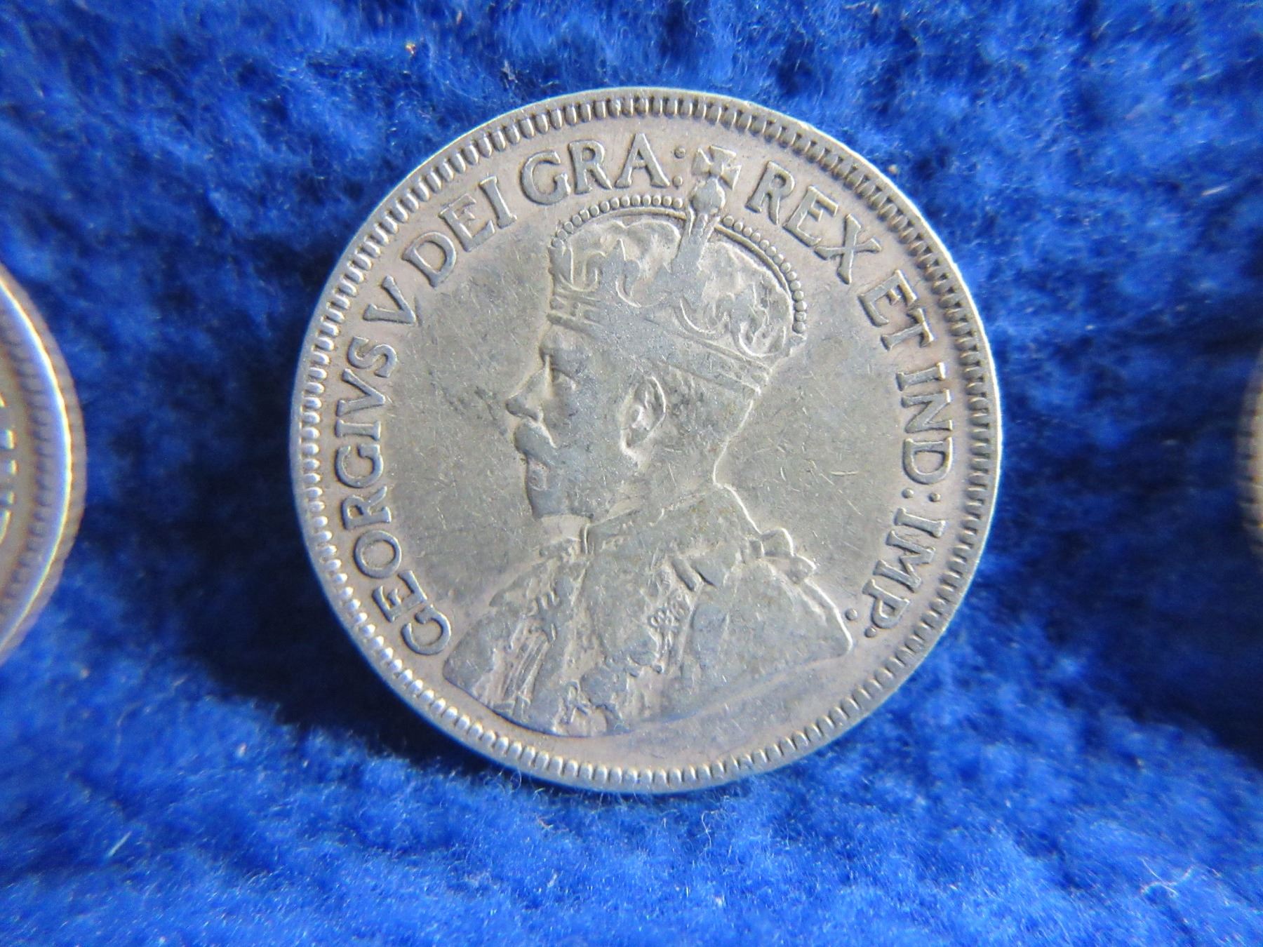 Lot 261 3 Canadian 25 Cent Coins - .800 Silver - 1929 x 2, 1936