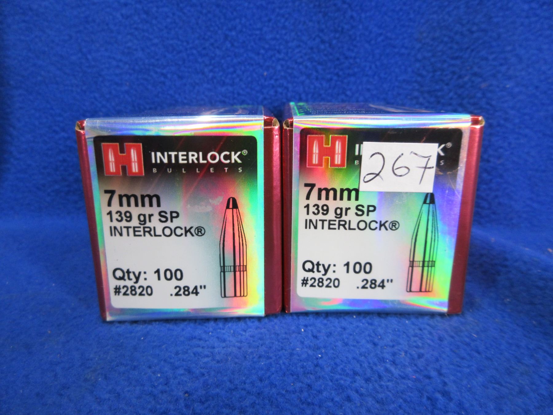 Lot 267 7MM .284" 139gr SP Interlock Hornady Bullets - 2 Sealed Boxes of 100