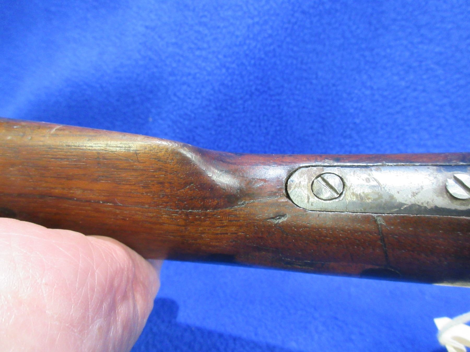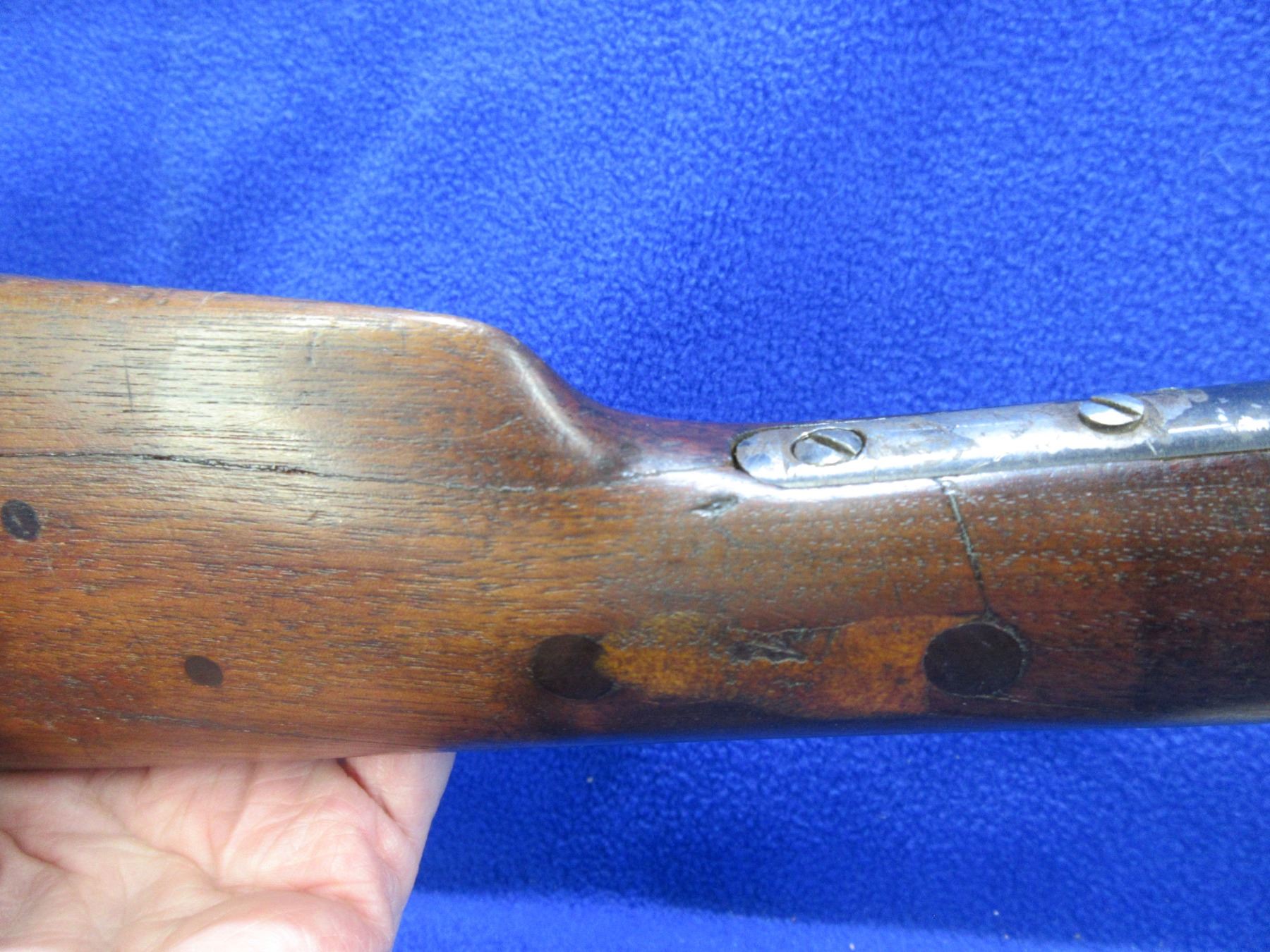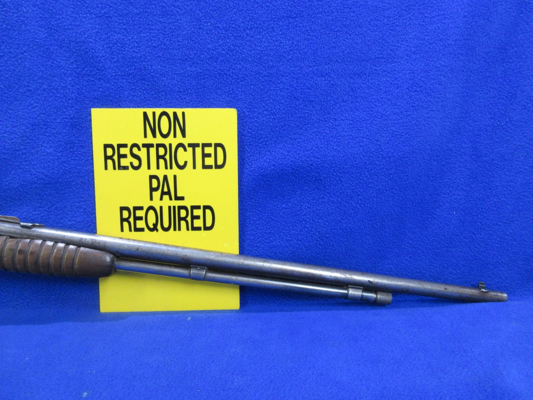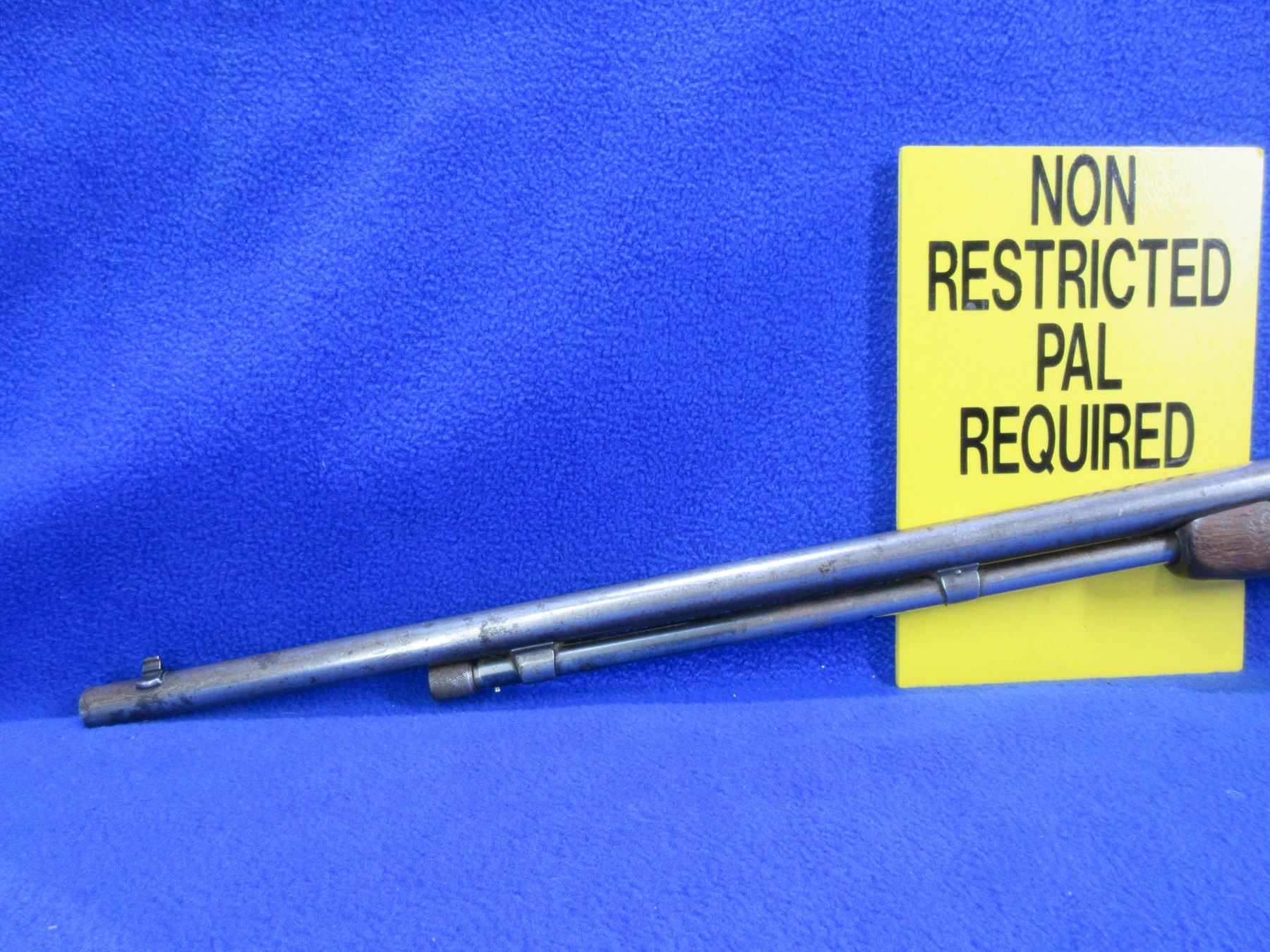 Non-Restricted - Winchester Model 62 in 22 LR - Made in 1939, this is a pump action takedown rifle with tube magazine, action appears to be in good working order. Barrel is 23", rifling is good to very good, bluing is mostly gone, has both sights, stock has beebroken and is repaired with dowel pins, length of pull is 13", forearm is fair, crescent metal butt plate good. Ser # 85502A