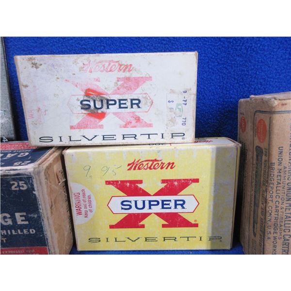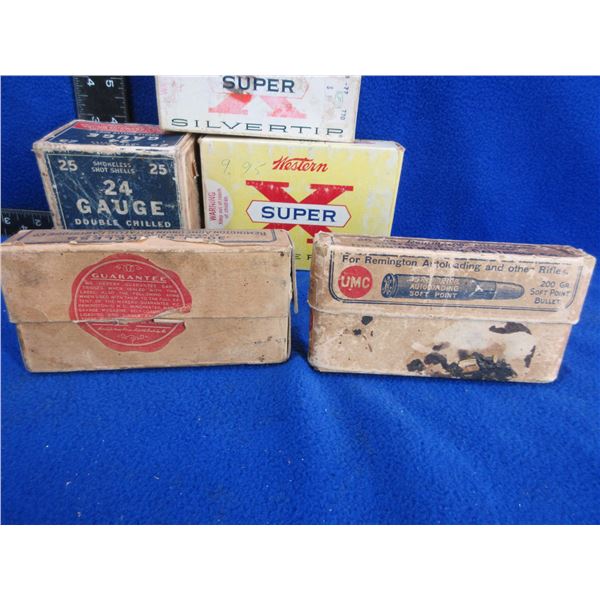 5 Empty Collector Ammo Boxes - Western x 2, CIL 24 Ga,, UMC x 2