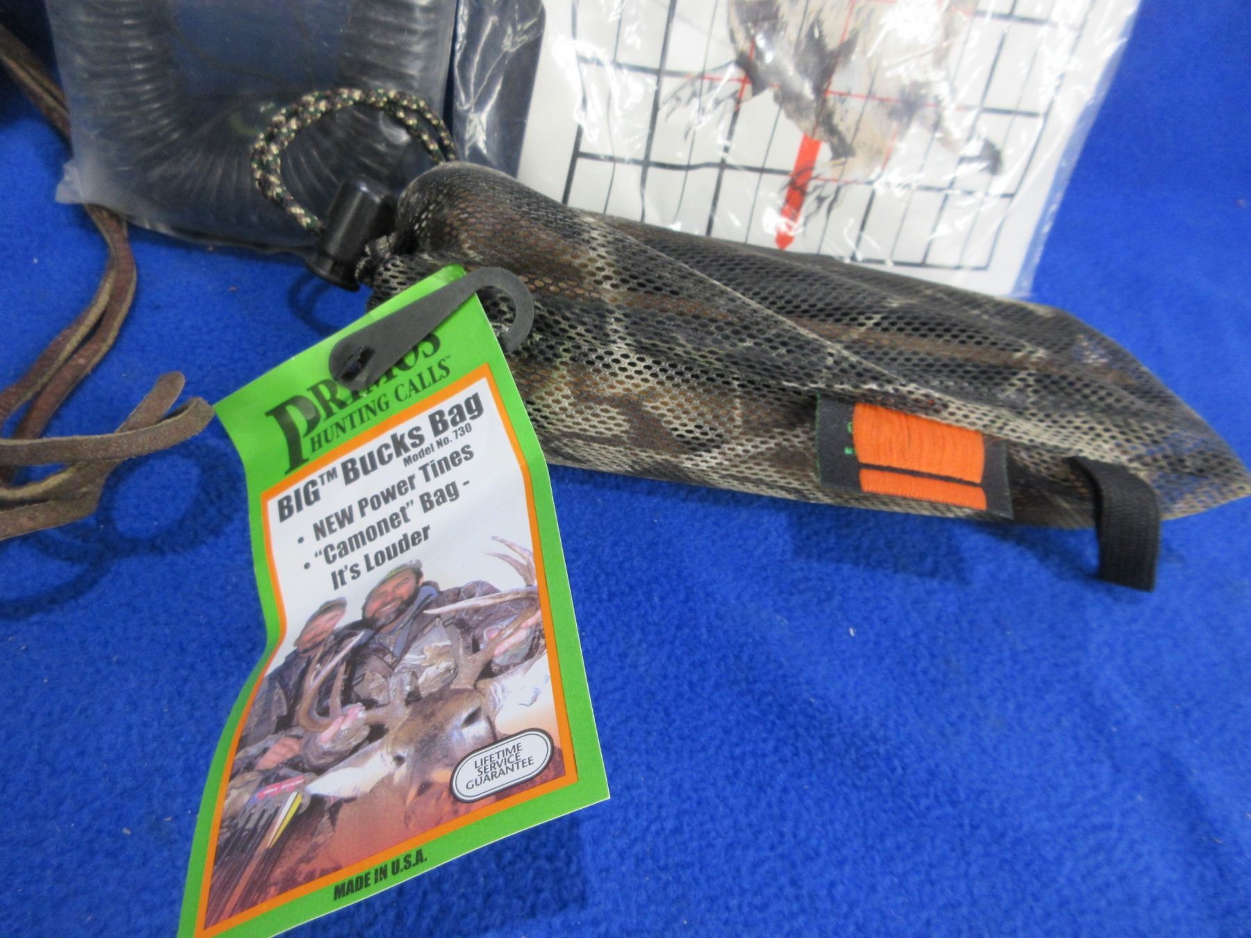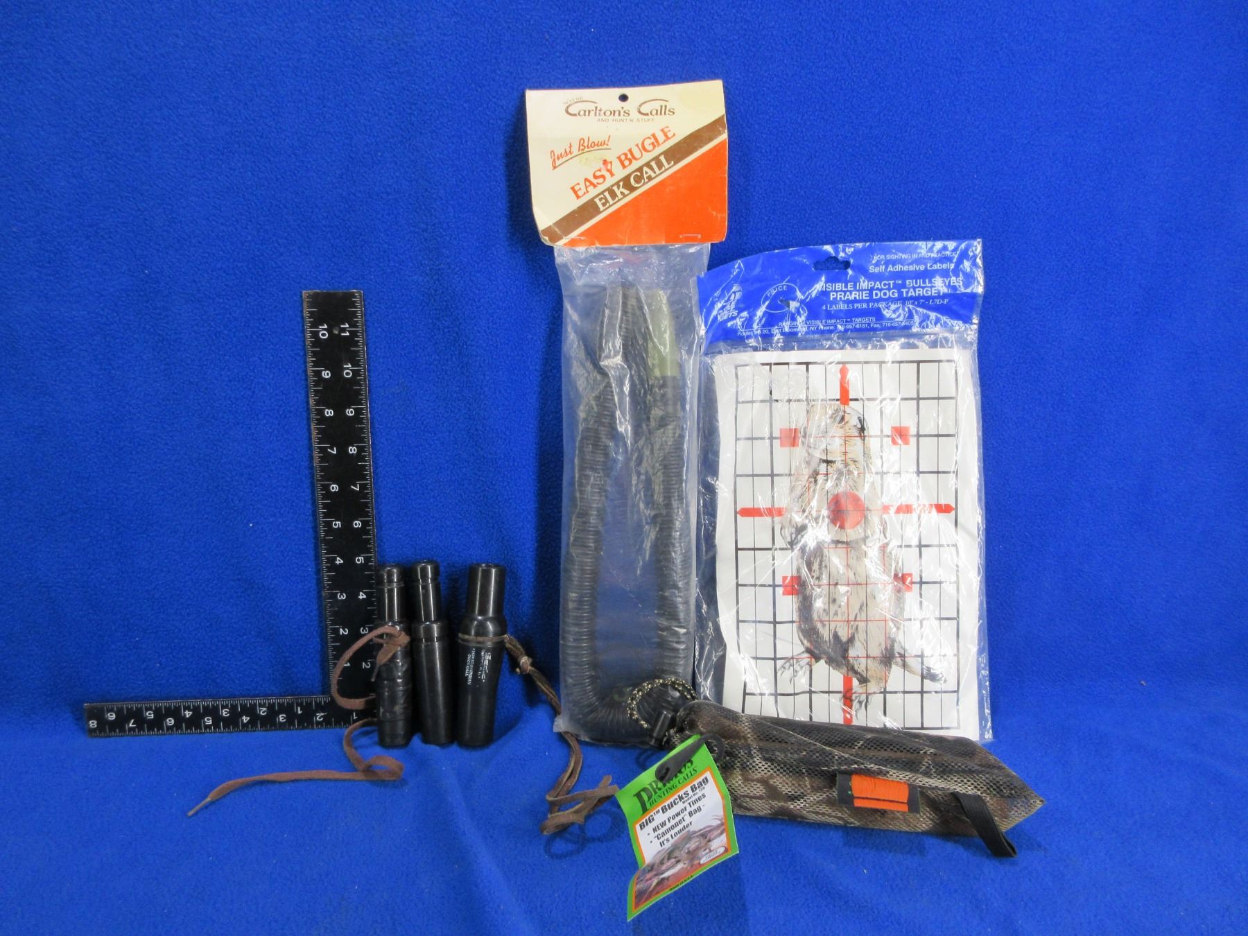 Lot 284 2 Goose Calls, Duck Call, Bugle Elk Call, Big Bucks Bag, Target