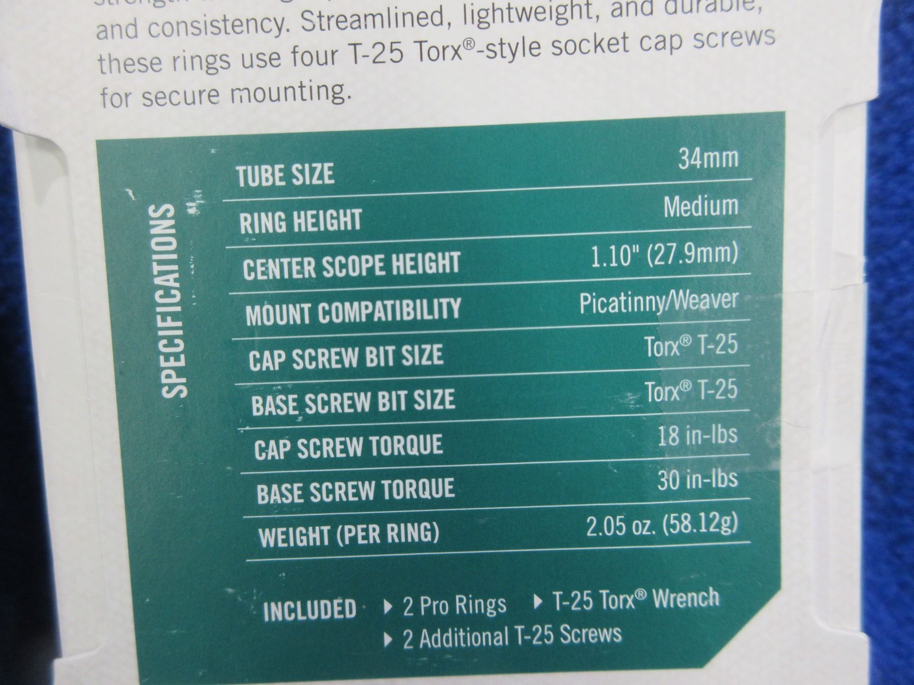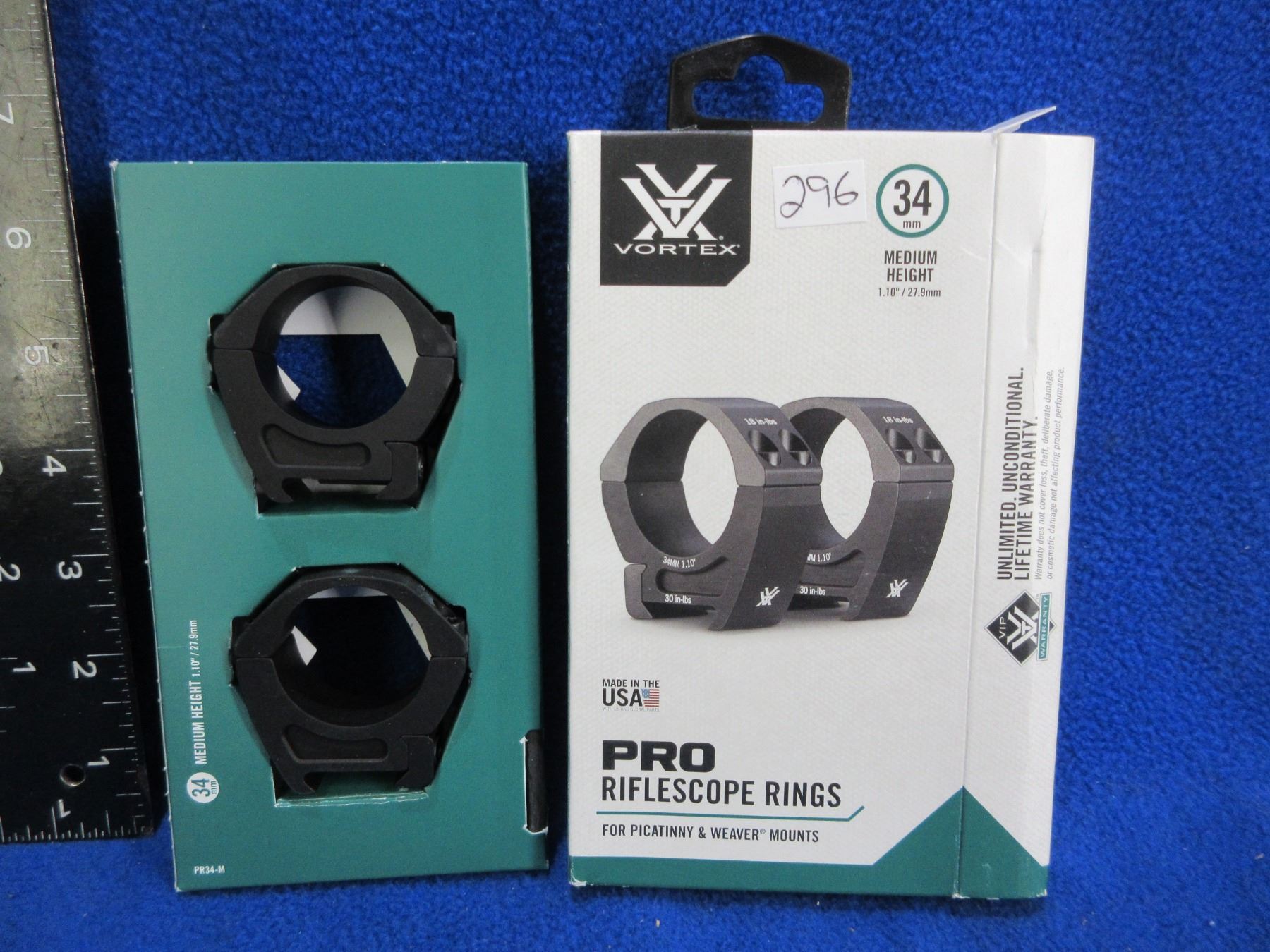 Lot 296 Vortex Pro 34MM Medium Scope Rings For Weaver & Picatinny Mounts