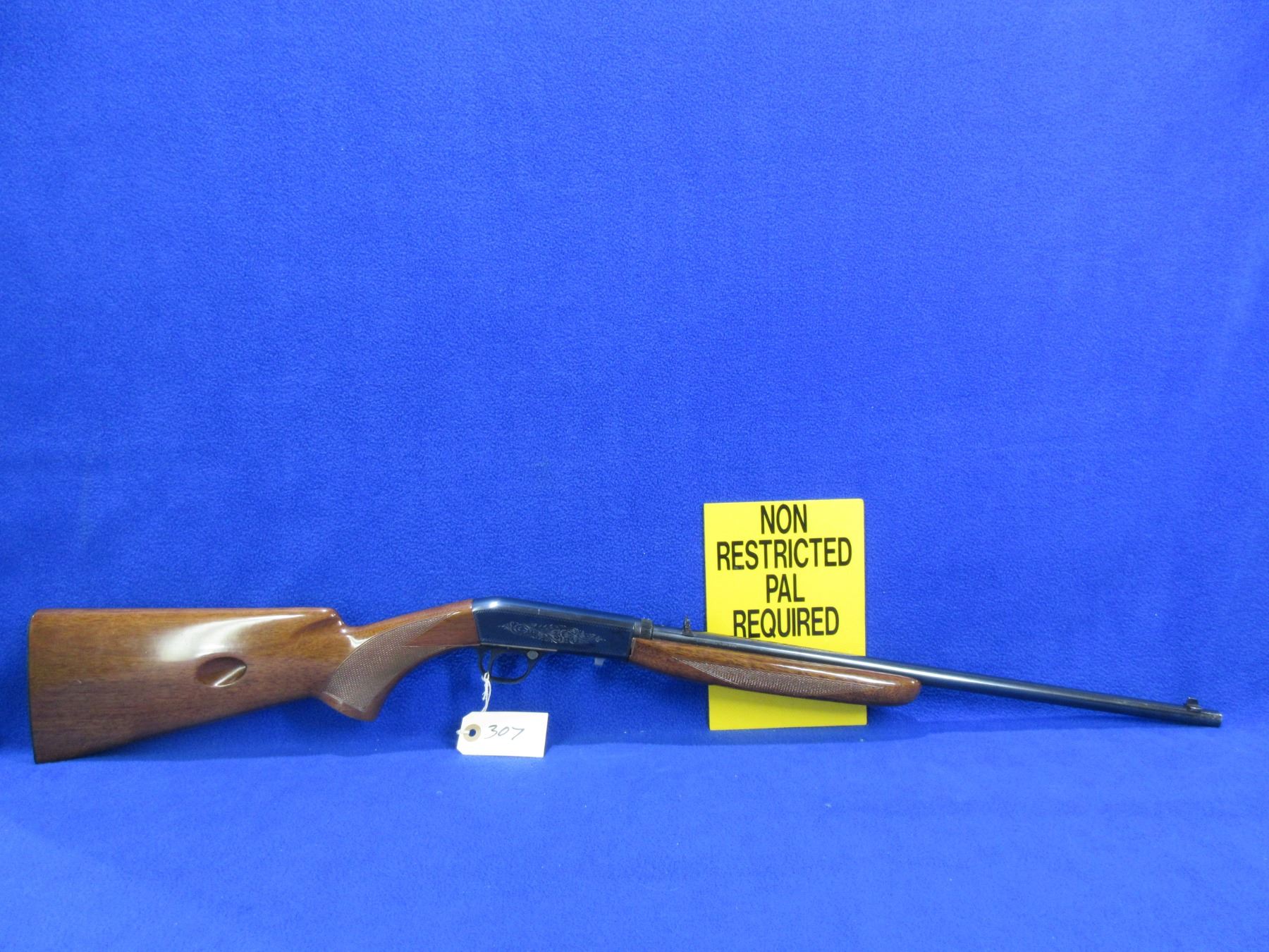 Non-Restricted - Browning Model Auto 22 in 22 LR - This is a semi-auto takedown rifle with tube magazine, action appears to be in good to very good working order. Barrel is 19", rifling is very good, bluing is good to very good, has both sights, stock and forearm are good to very good with minor usage marks, length of pull is 14", butt plate good. Ser # 69T15648