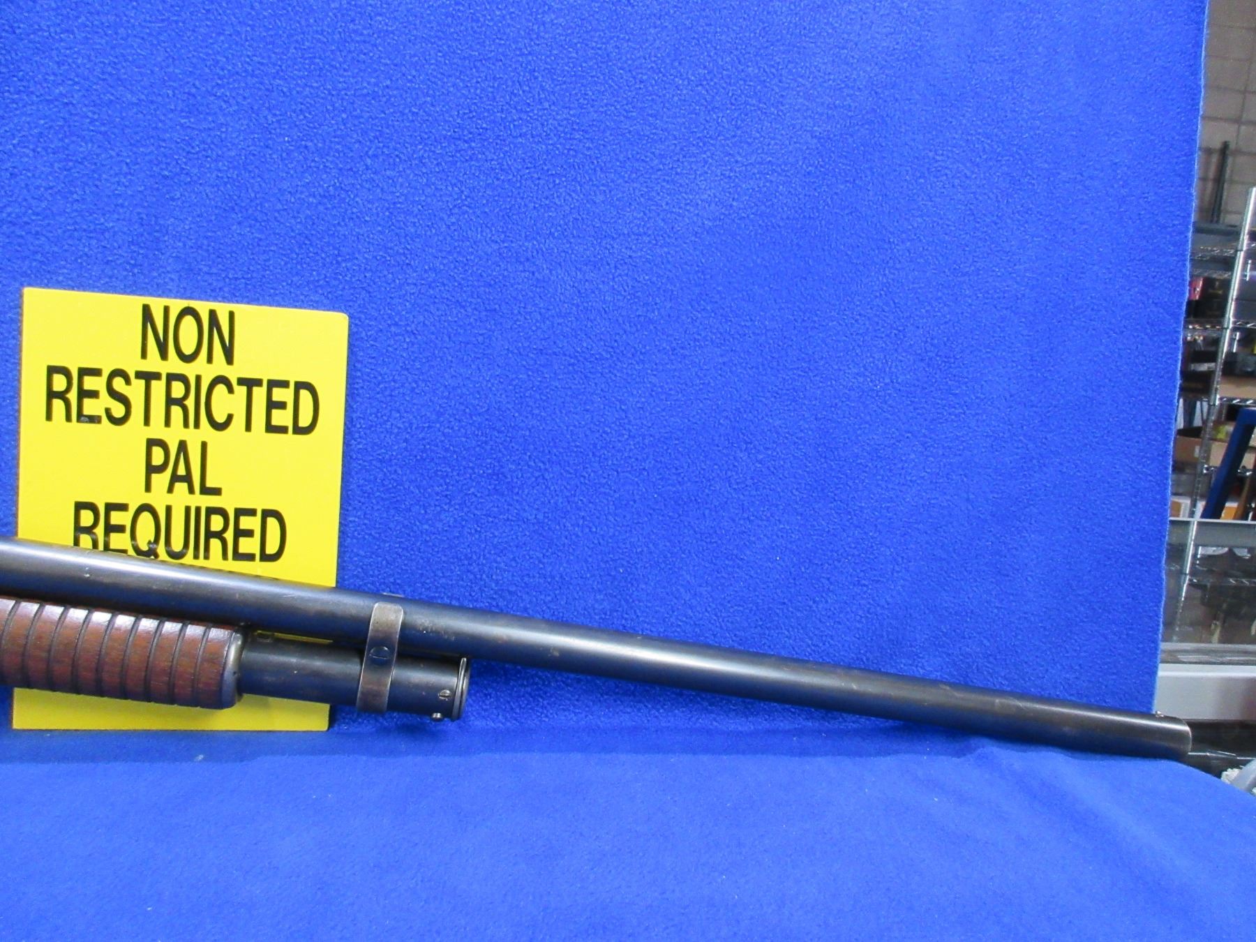 Non-Restricted - Winchester Model 1897 in 12 Ga. 2 3/4" Full - Made in 1930, this is a pump action takedown shotgun with tube magazine, takedown is tight, action appears to be in good to very good working order. Barrel is 30", bore is good to very good, bluing is good but turning grey, has bead front sight, stock is good to very good with minor usage marks, forearm is good to very good with minor usage marks, length of pull is 14", butt plate good. Ser # 809613