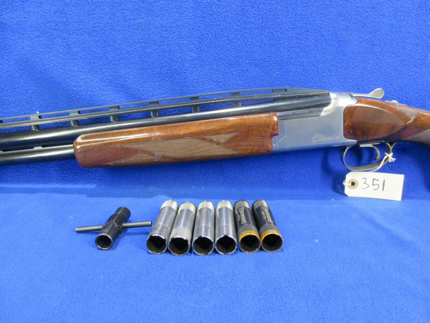 Non-Restricted - Browning Citori CX Trap in 12 Ga. 2 3/4" & 3" - This is a very nice over/under shotgun with removable chokes, action is tight and appears to be in good to very good working order. Raised vent rib barrels are 30", bores are very good, silver finish on the action is good to very good, bluing is very good, has bead front sight, stock is good to very good but finish has been modified, forearm is good to very good with minor usage marks, length of pull is 15 1/4", adjustable rubber recoil pad good has a piece missing on the heal. Comes with 6 extra chokes and a wrench. Ser # 11345ZN131