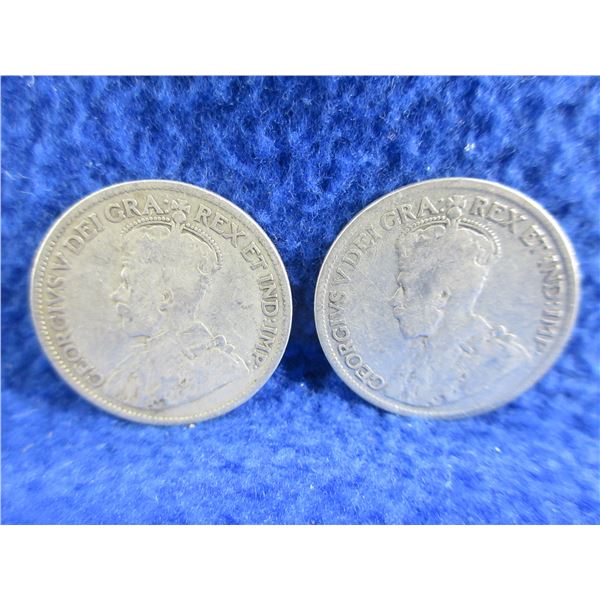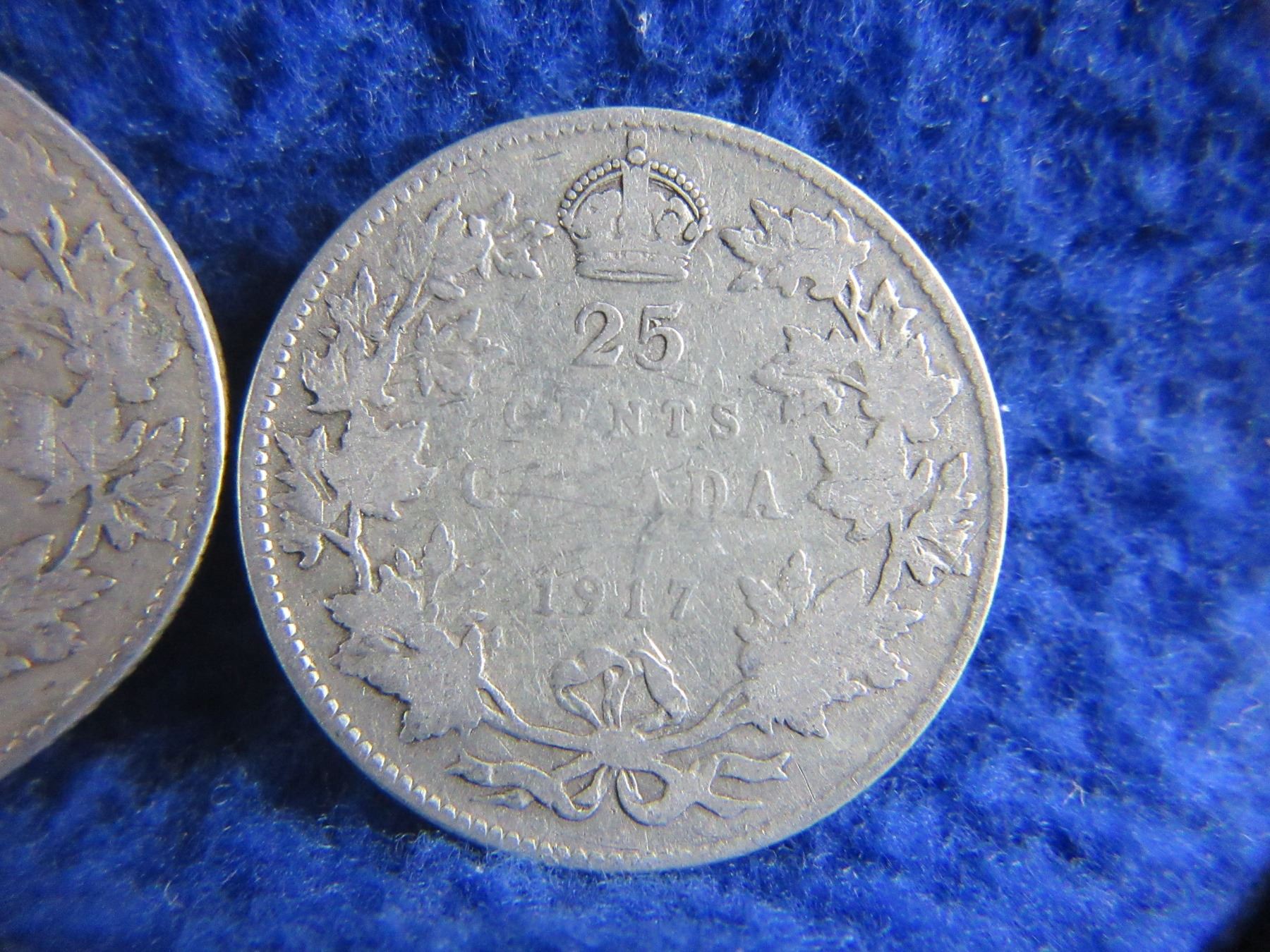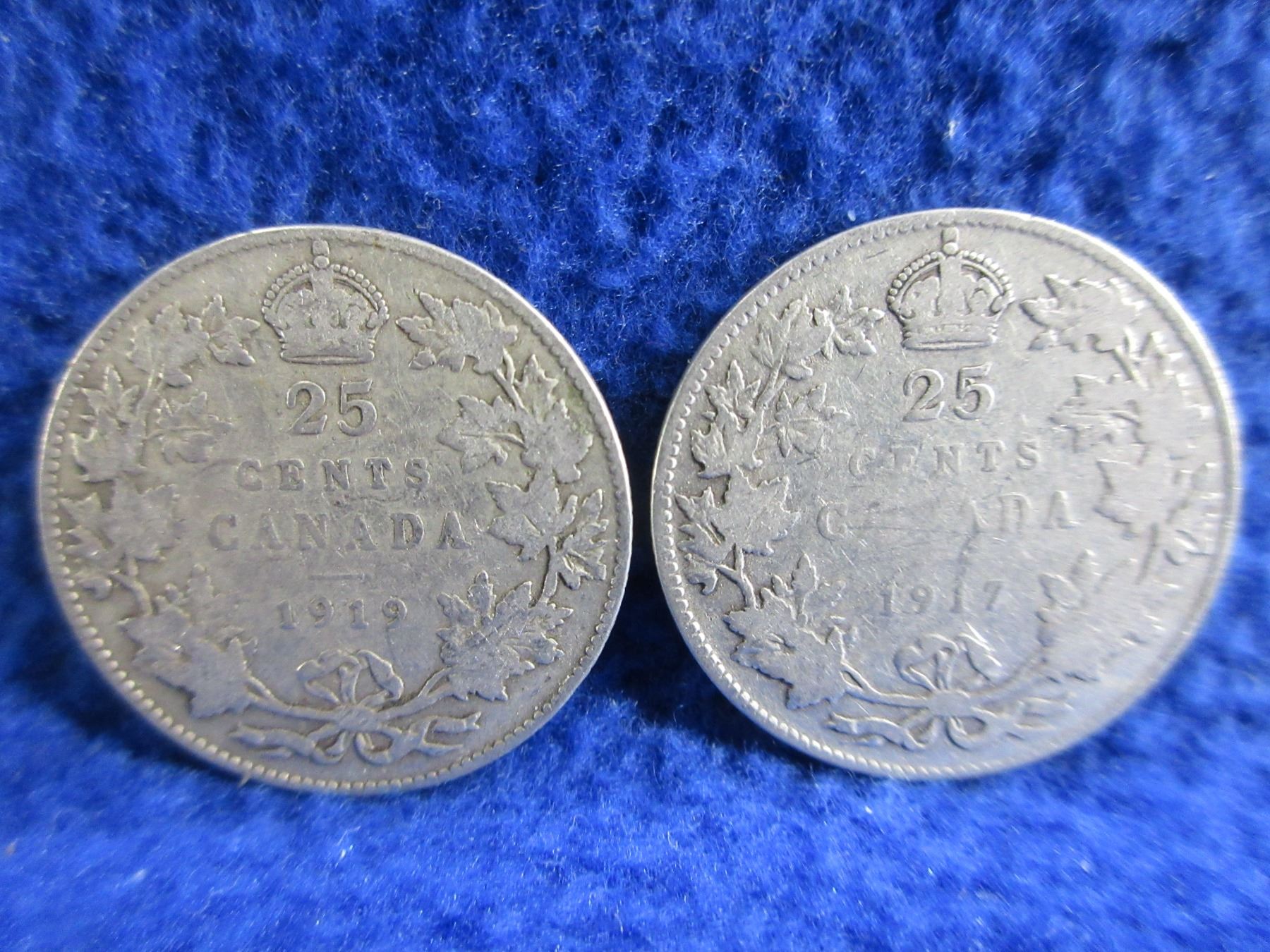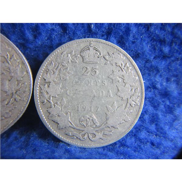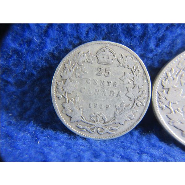 2 Canadian 25 Cent Coins - .925 Silver - 1917, 1919