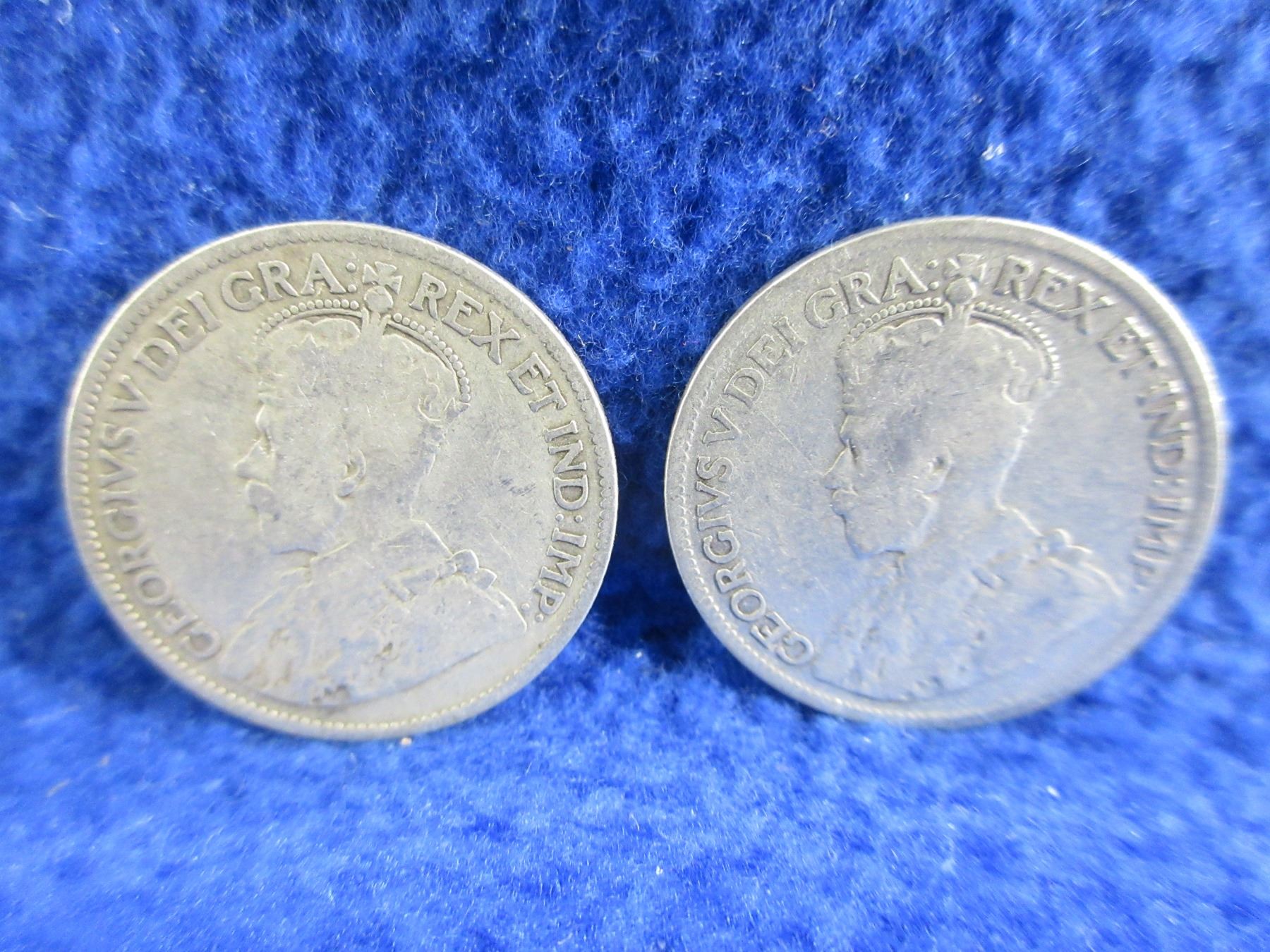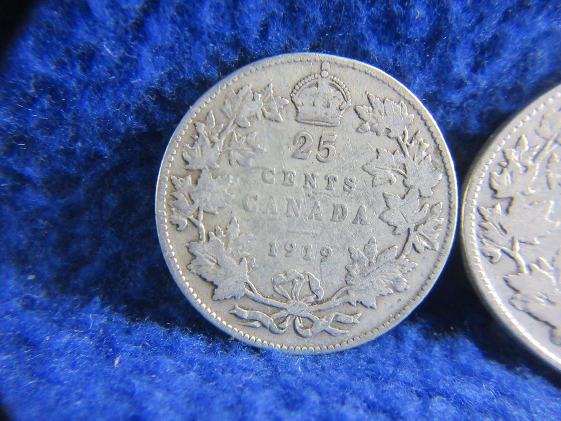 Lot 355 2 Canadian 25 Cent Coins - .925 Silver - 1917, 1919