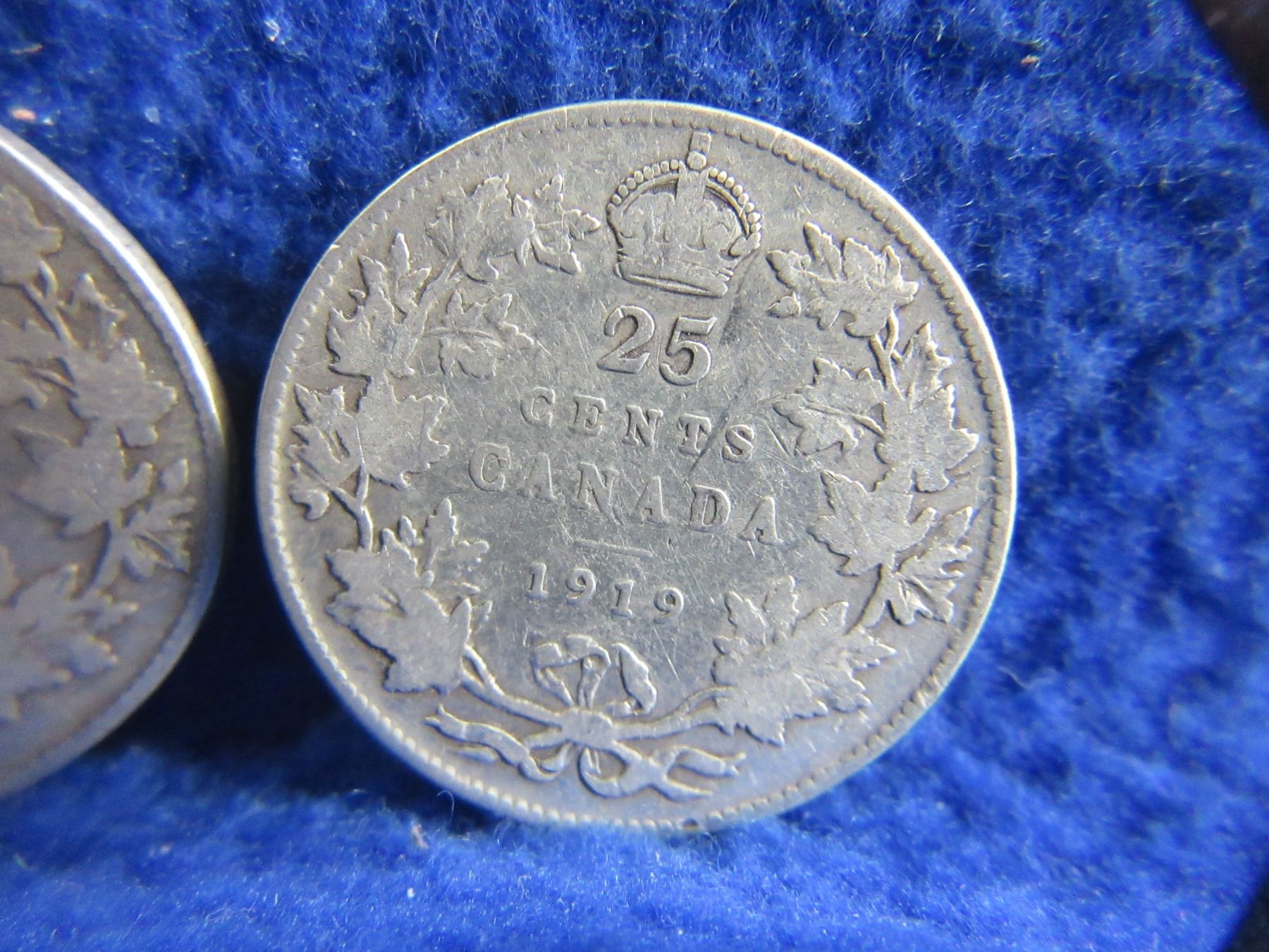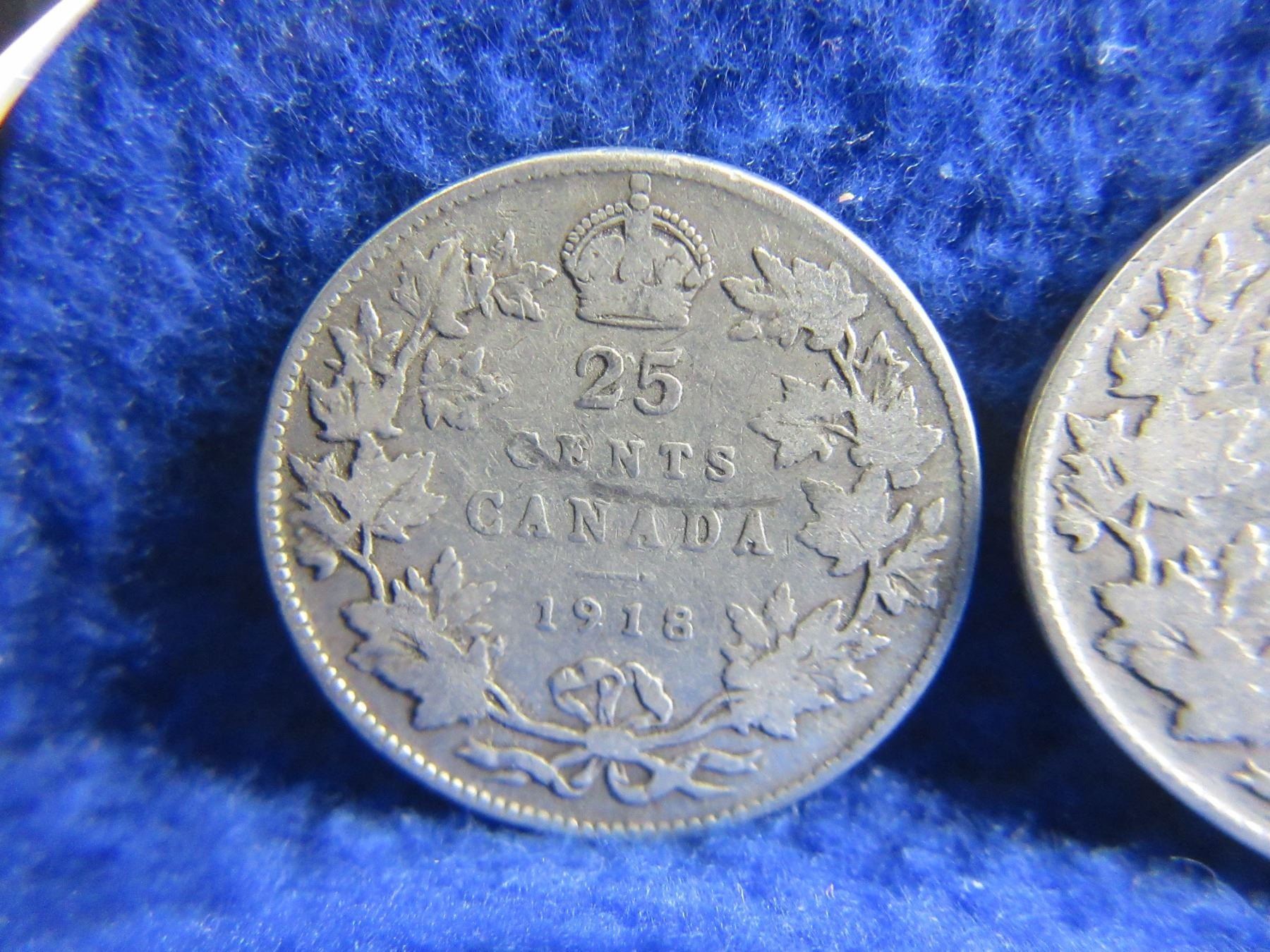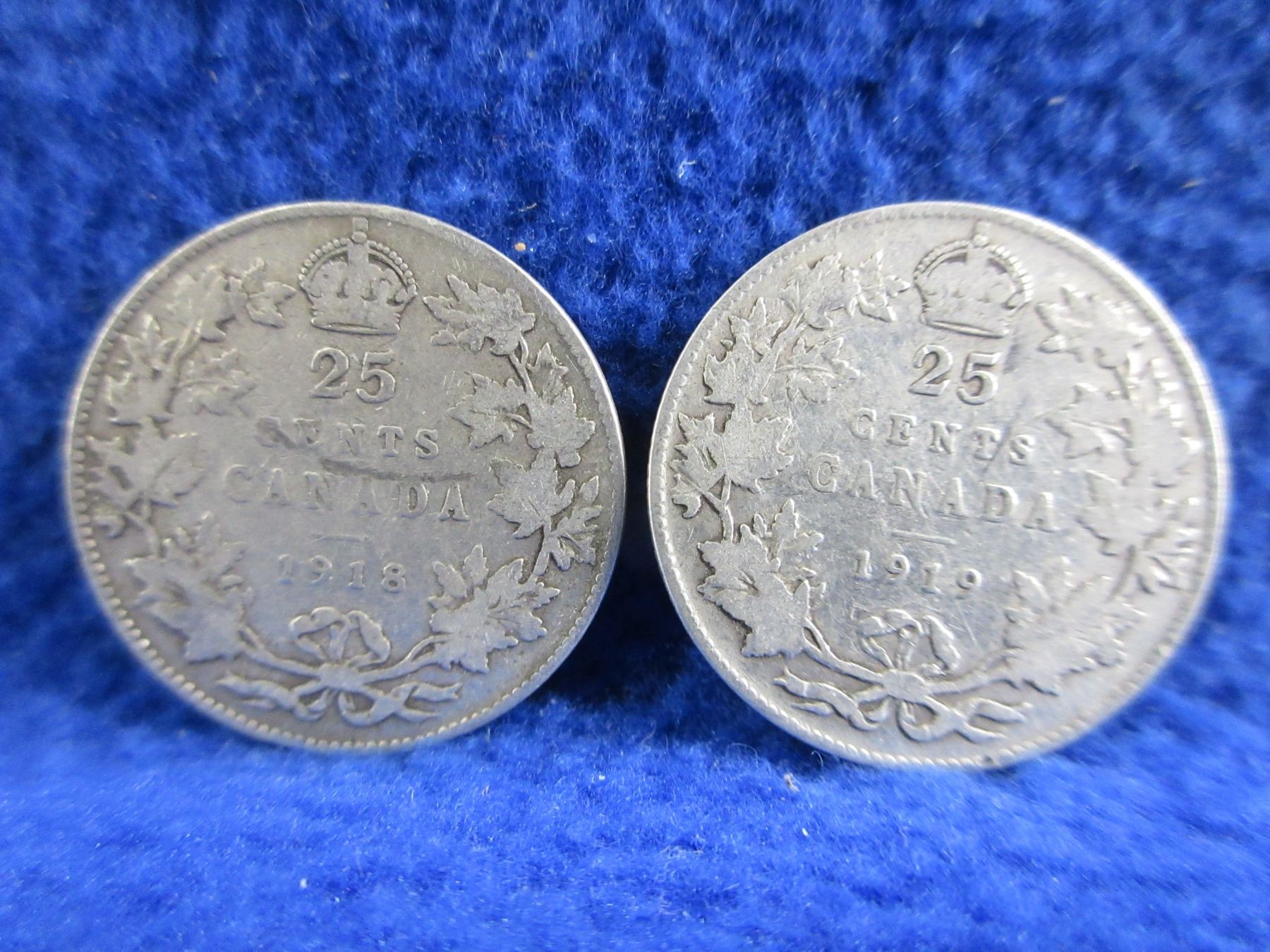 2 Canadian 25 Cent Coins - .925 Silver - 1918, 1919