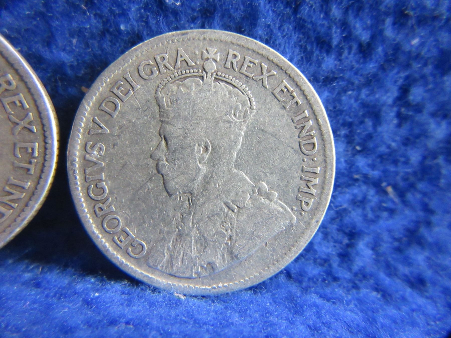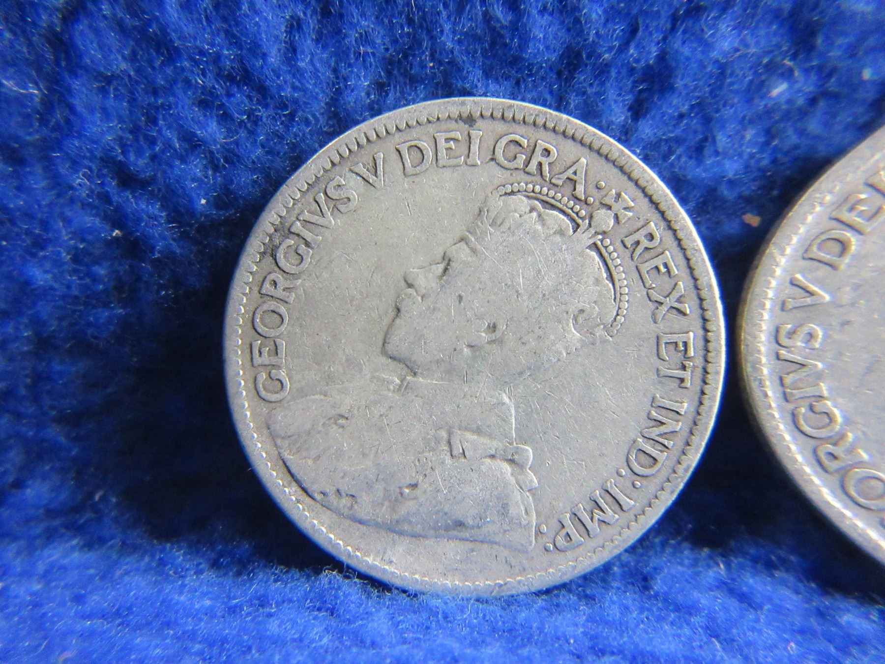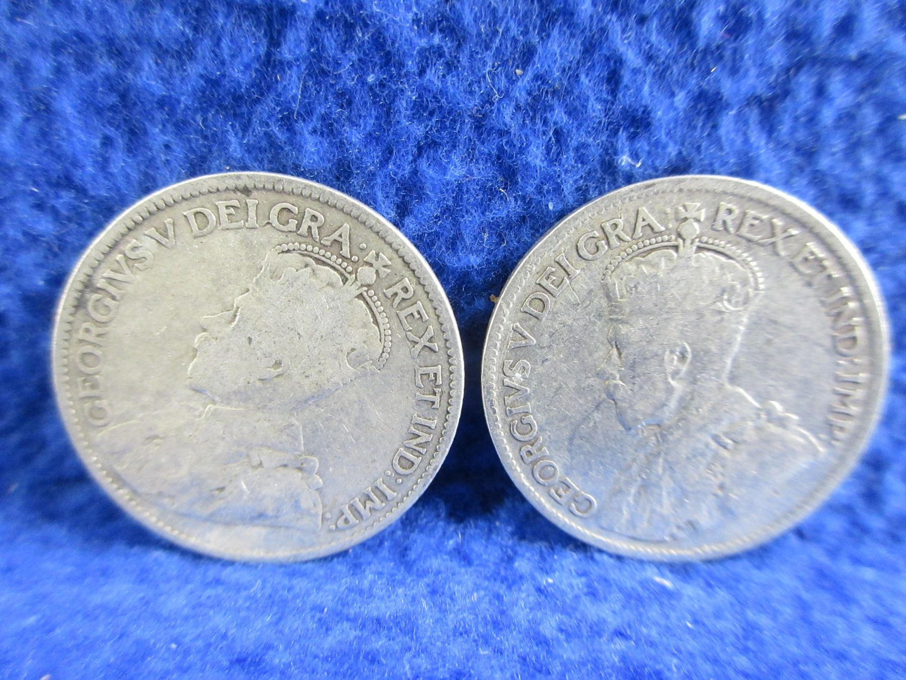 Lot 360 2 Canadian 25 Cent Coins - .925 Silver - 1918, 1919