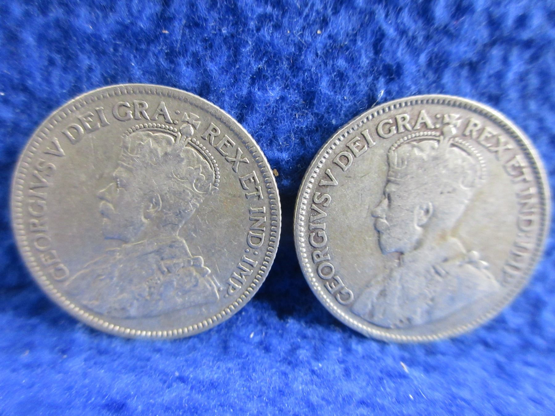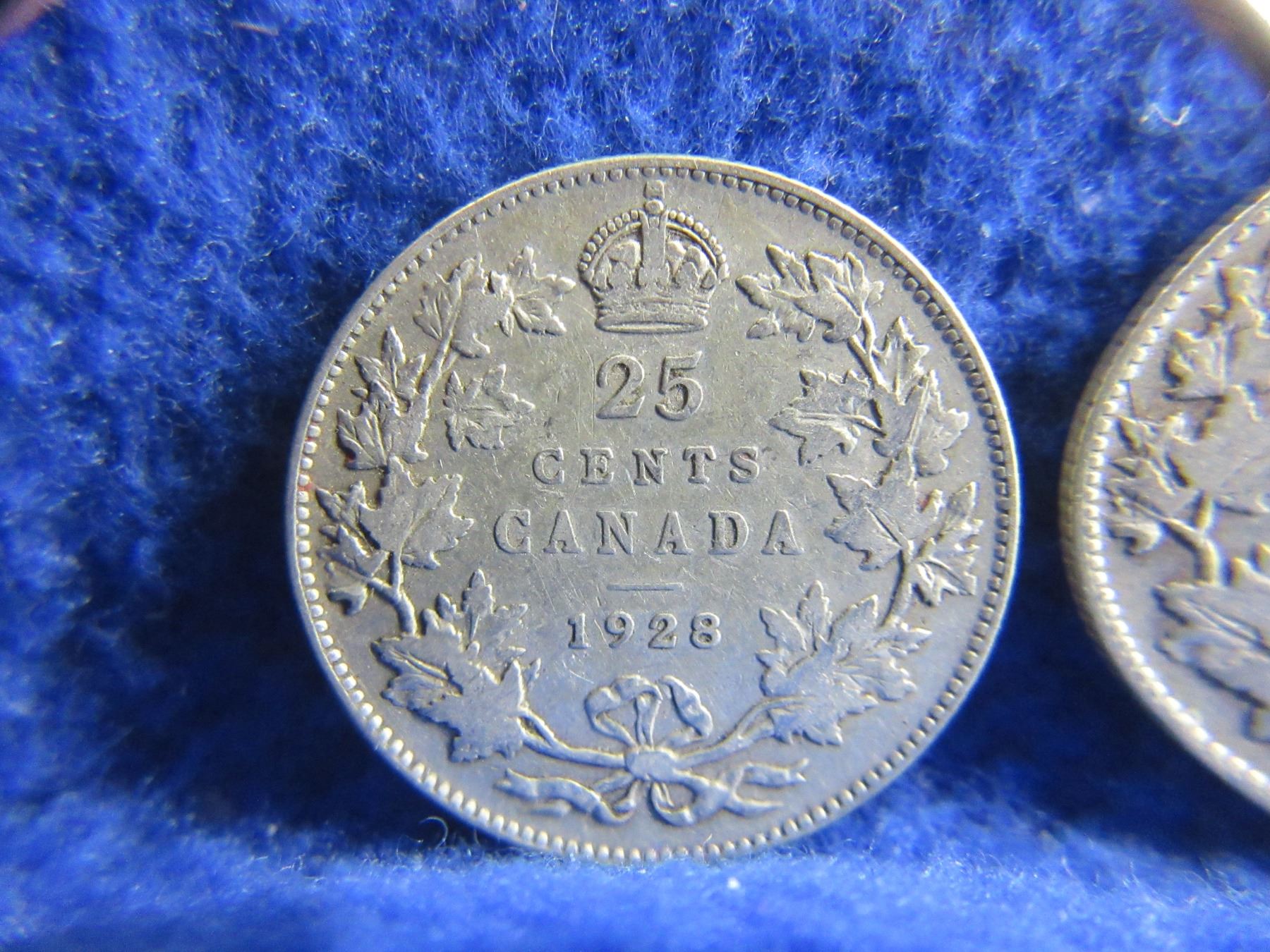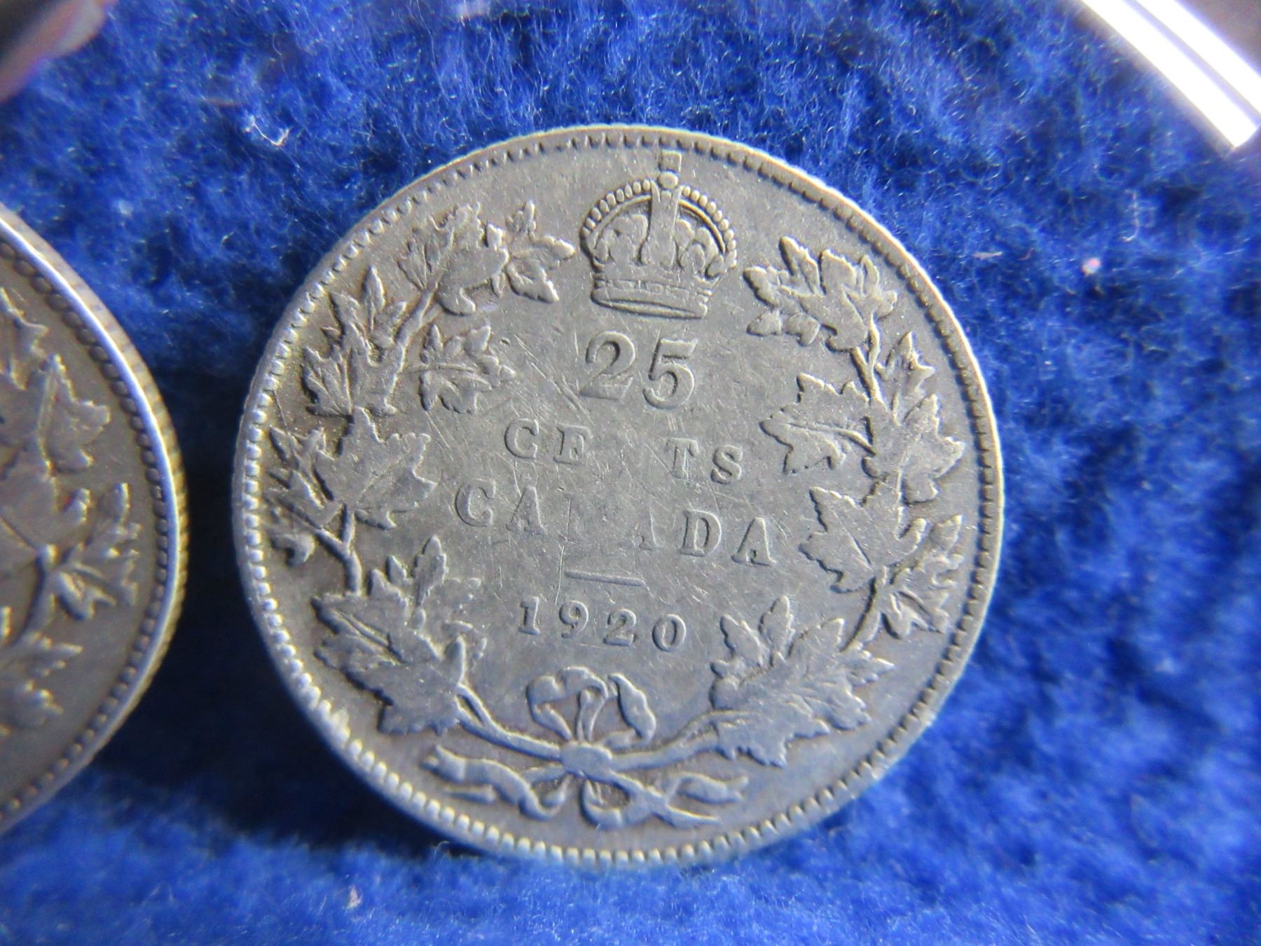 Lot 362 2 Canadian 25 Cent Coins - .800 Silver - 1920, 1928