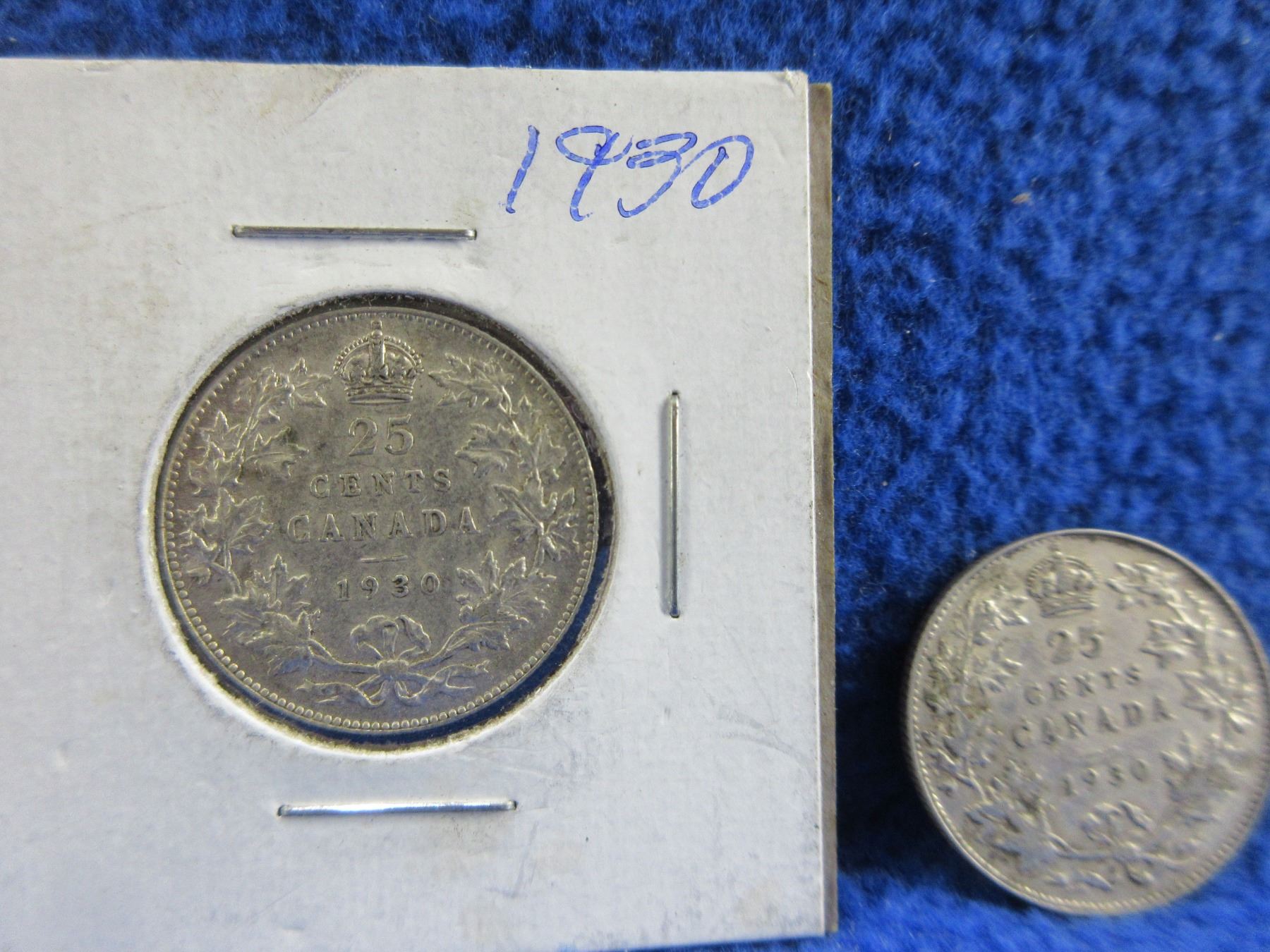 Lot 364 2 Canadian 25 Cent Coins - .800 Silver - 1930 x 2