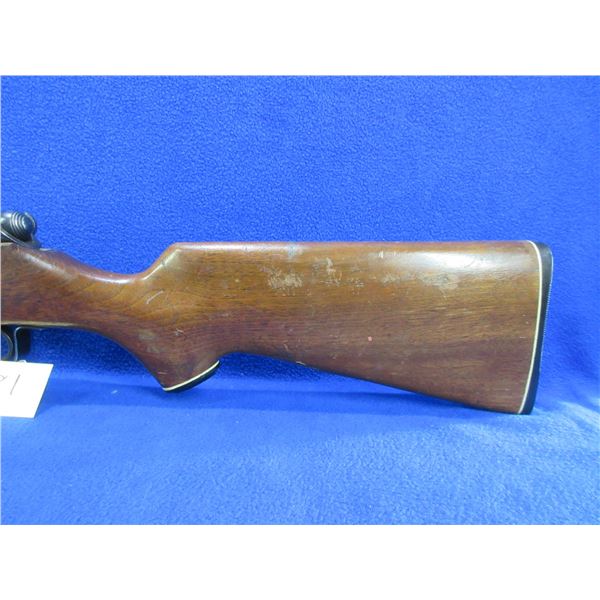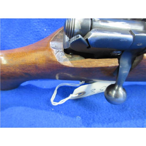 Non-Restricted - Savage Model 340C in 30-30 Win. - This is a bolt action rifle with removable magazine, action appears to be in good working order but safety is not working correctly. Barrel is 18 1/4", rifling is good to very good, bluing is good but fading, has both sights, stock is good with usage marks, some finish flaking and chips on both sides at back of action, length of pull is 13 3/4"", butt plate good. Ser # 141684