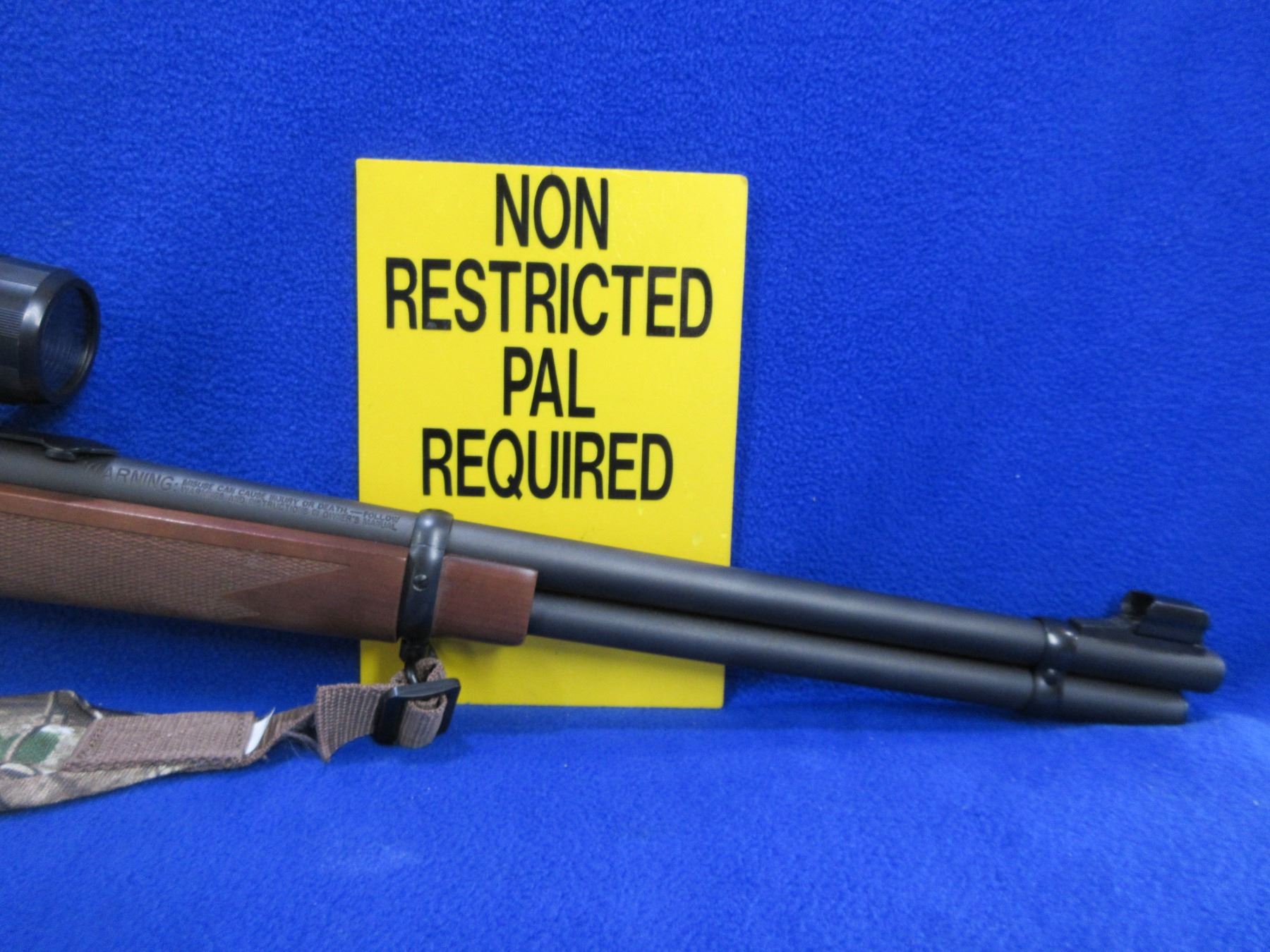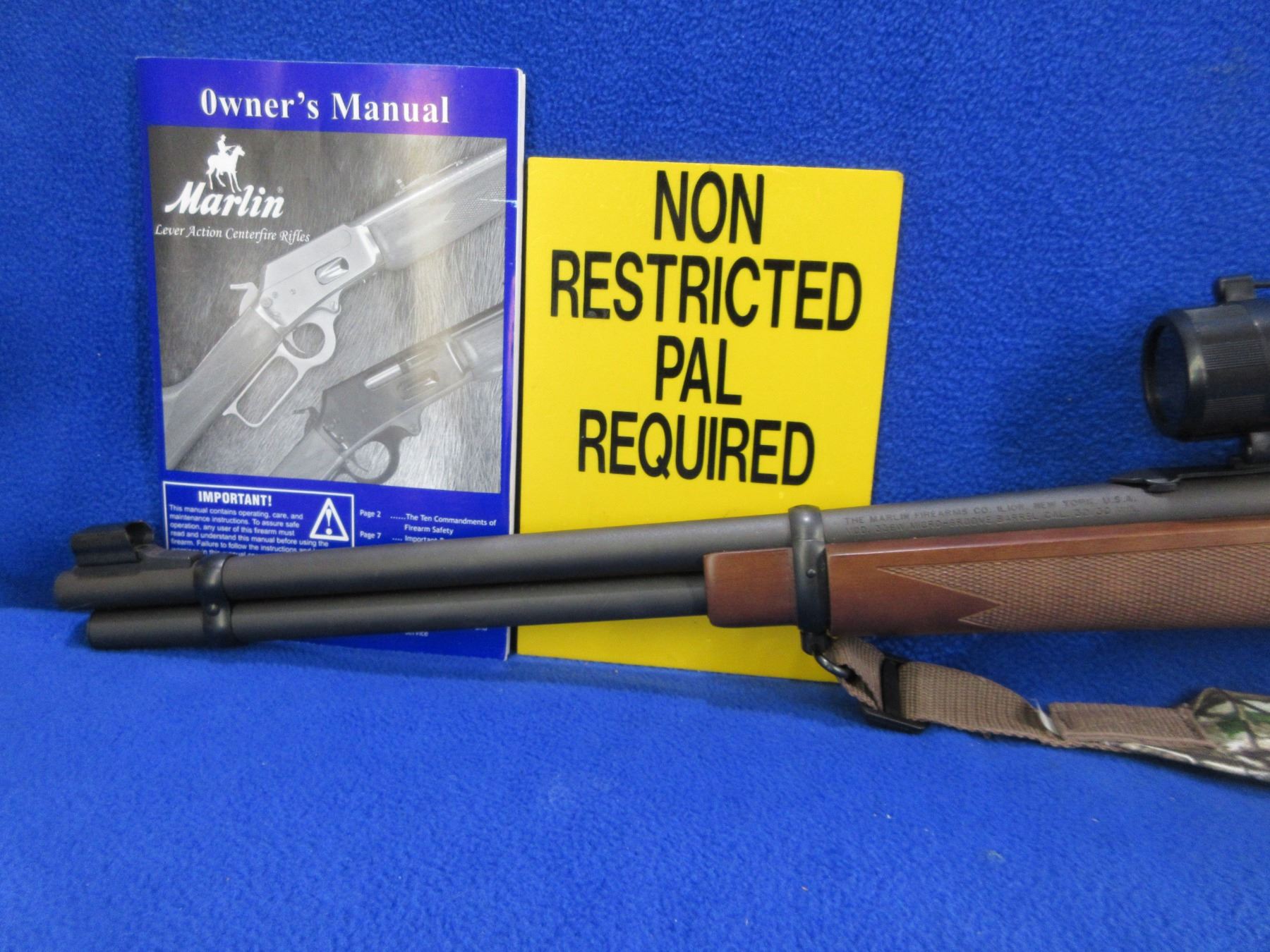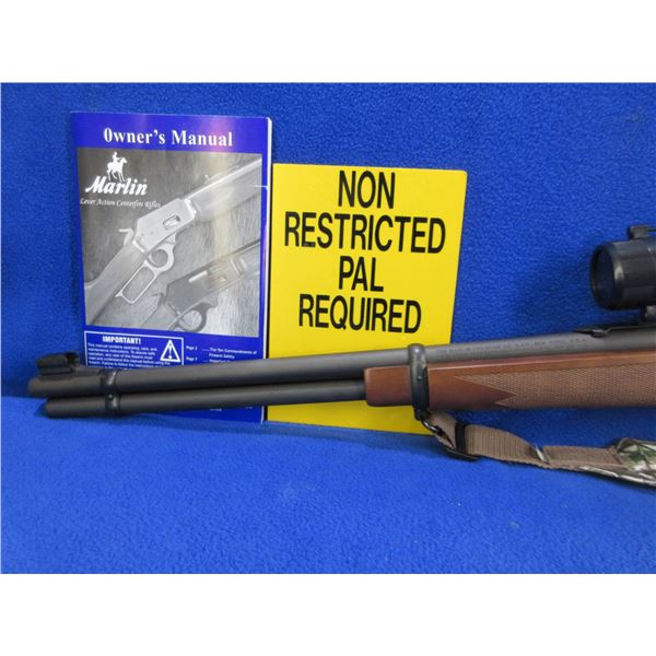 Non-Restricted - Marlin Model 336W in 30-30 Win. - This is a very nice/clean lever action rifle with tube magazine, action appears to be in very good working order. Barrel is 20", rifling is very good, matte black finish is very good, has both sights and a Marlin 3-9x32 scope with lens covers - appears clear, duplex reticle, stock and forearm are very good with a few minor usage marks, length of pull is 13 1/2", butt plate very good, comes with swivels and a strap. Ser # MR94394E