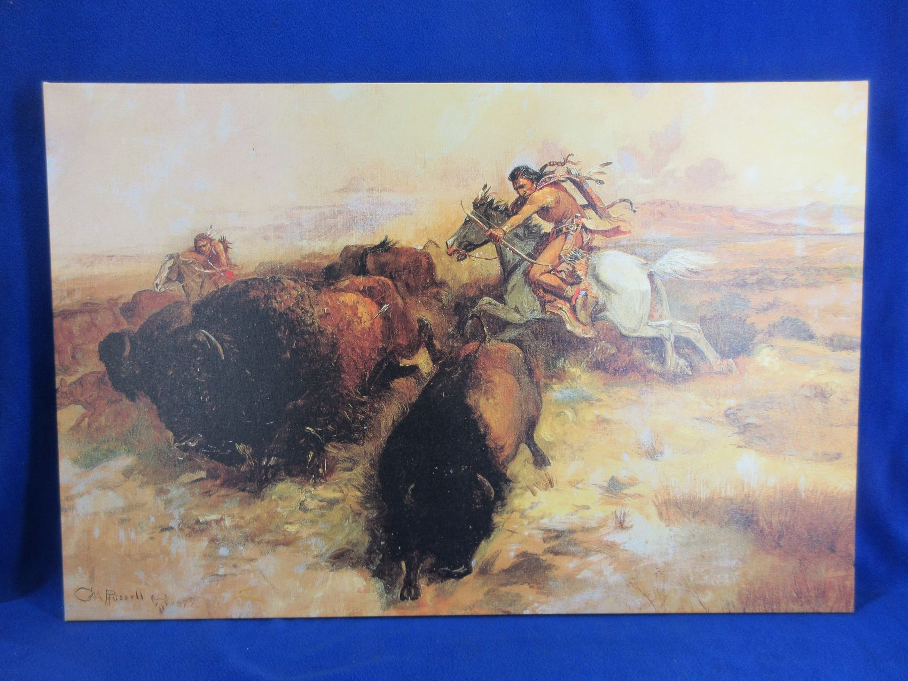 Lot 402 Framed Charles M. Russell Print on Canvas 1897 "Buffalo Hunt" - PICK UP ONLY