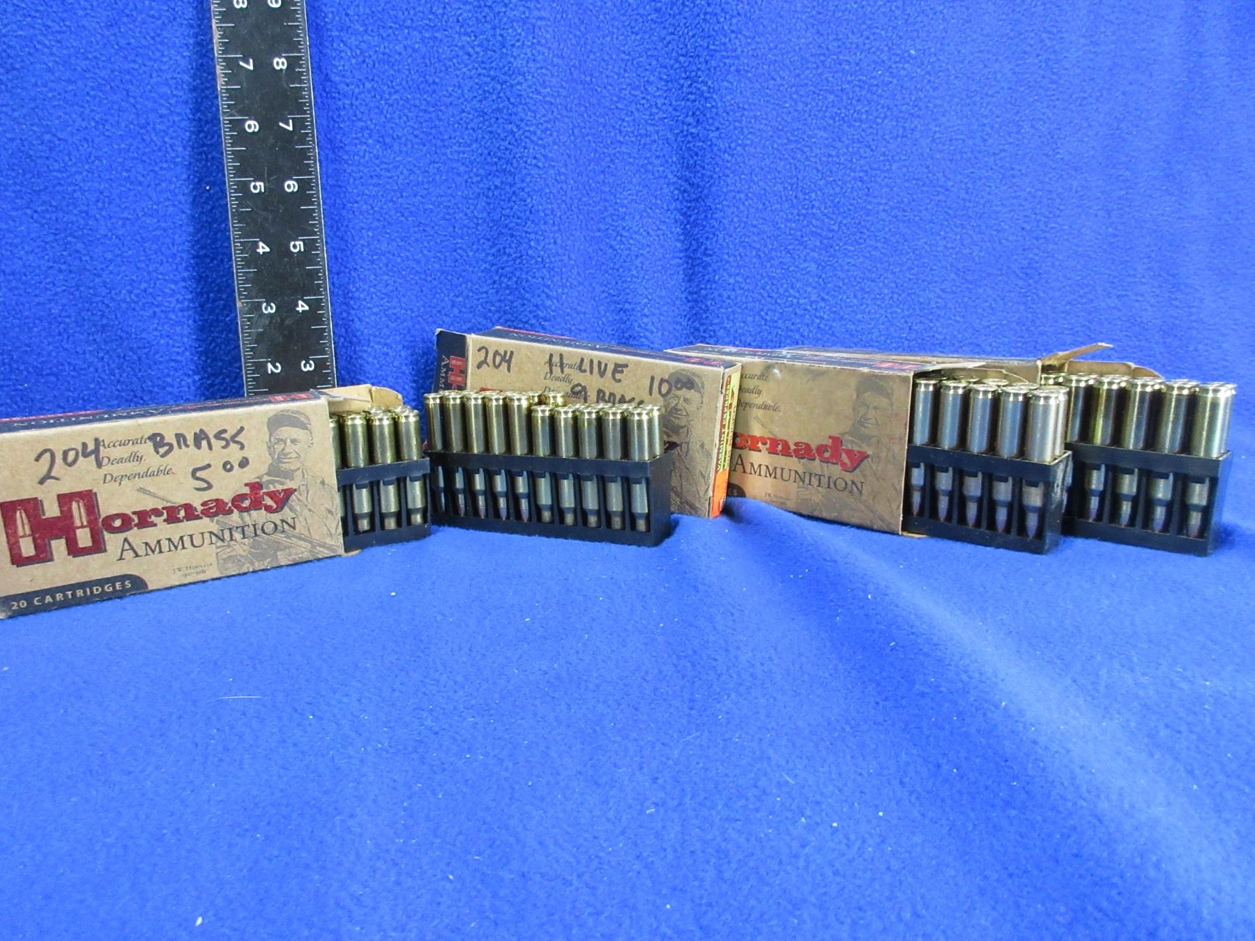 204 Ruger 40gr V-Max Hornady (Pick Up or Ship by UPS Only) Cartridges - 2 Boxes of 20, Box of 11 + 29 Brass