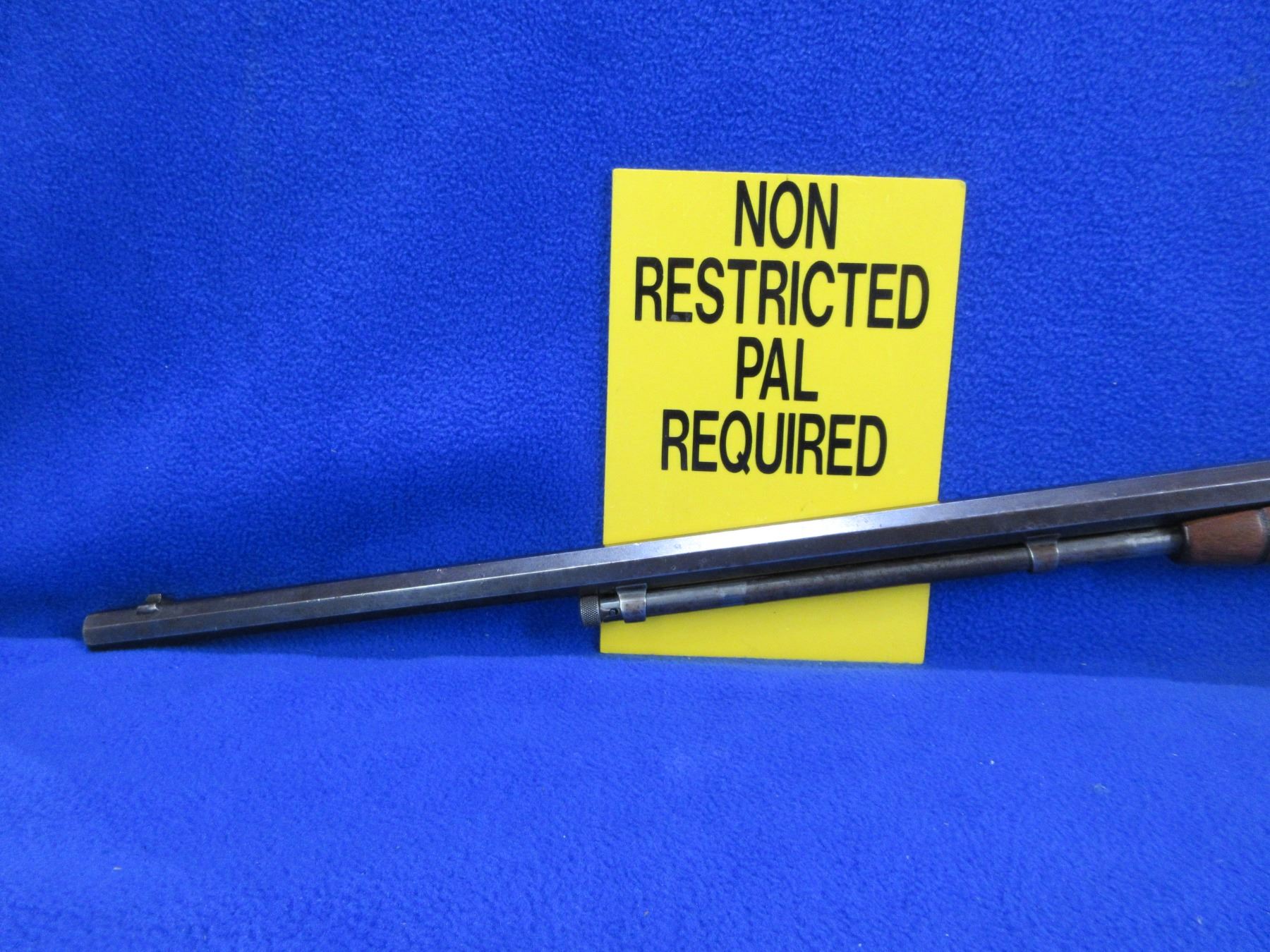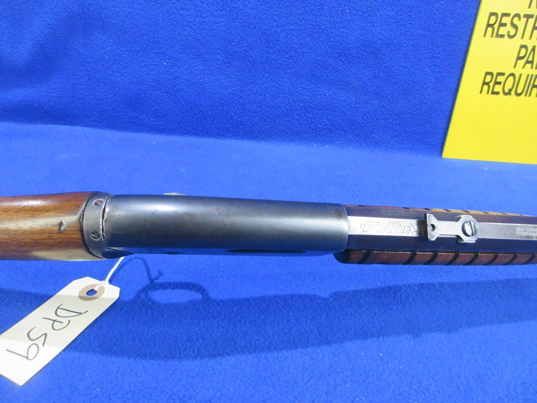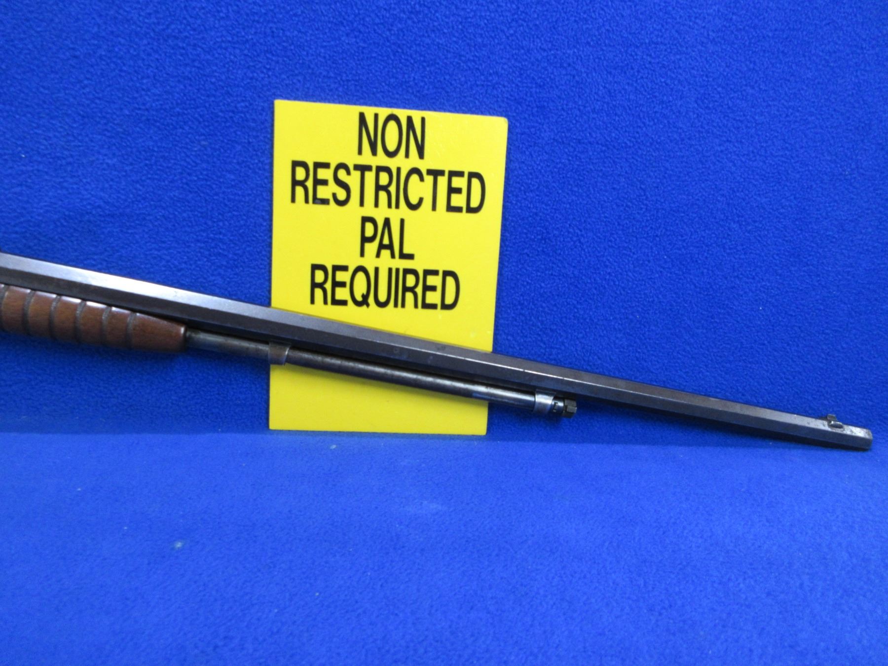 Non-Restricted - Remington Model 12 in 22 S/L/LR - This is a pump action takedown rifle with tube magazine, action appears to be in good to very good working order. Top of takedown area has some pry marks as shown in pictures. Octagon barrel is 24", rifling is poor to fair, bluing is good for age, has both sights, stock is good to very good with usage marks, forearm is good with usage marks, length of pull is 13 1/4", crescent metal butt plate good. Ser # 118943