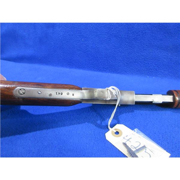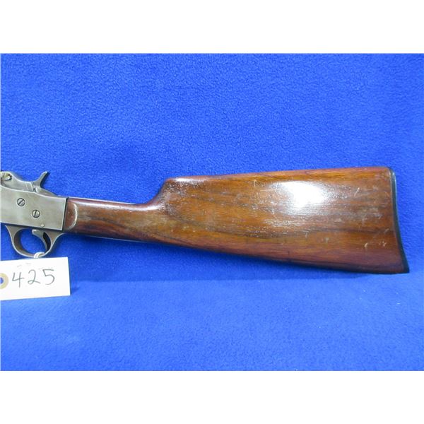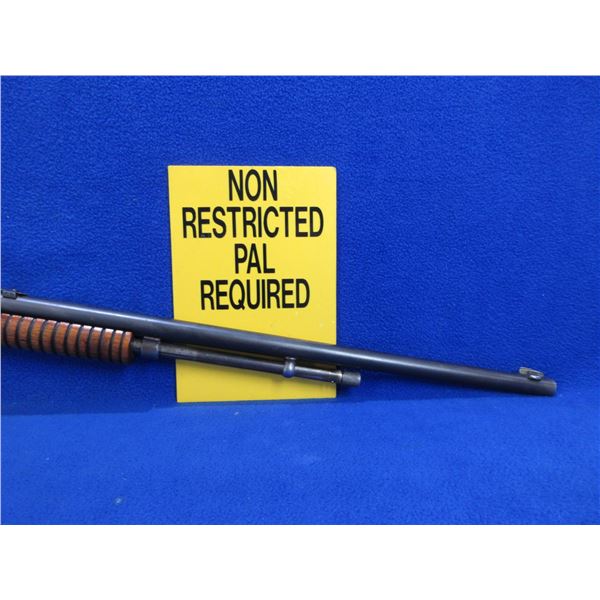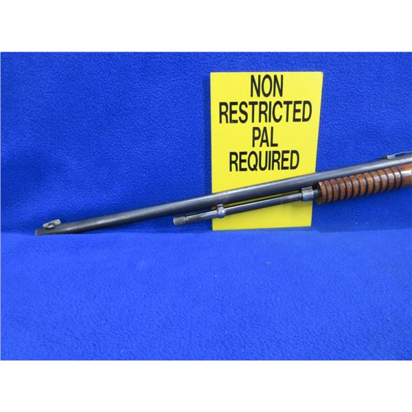 Non-Restricted - Stevens Visible Loader in 22 S/L/LR - This is a pump action rifle with tube magazine, action appears to be in good to very good working order. Barrel is 22", rifling is fair to good, bluing is fair to good, has both sights, rear sight is broken it comes with the piece and the ramp, stock is good to very good with usage marks, forearm is good to very good with usage marks, length of pull is 13 1/4", butt plate good. Ser # 641