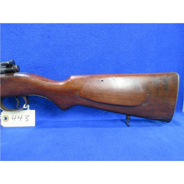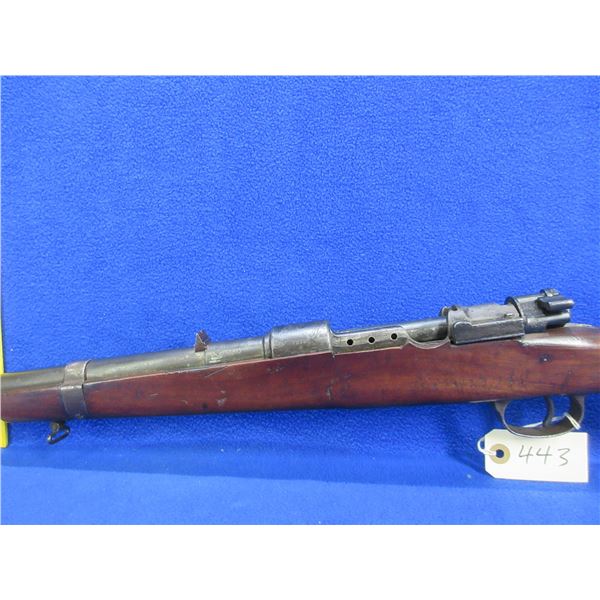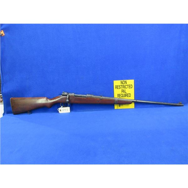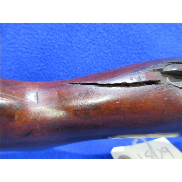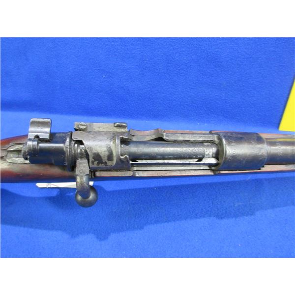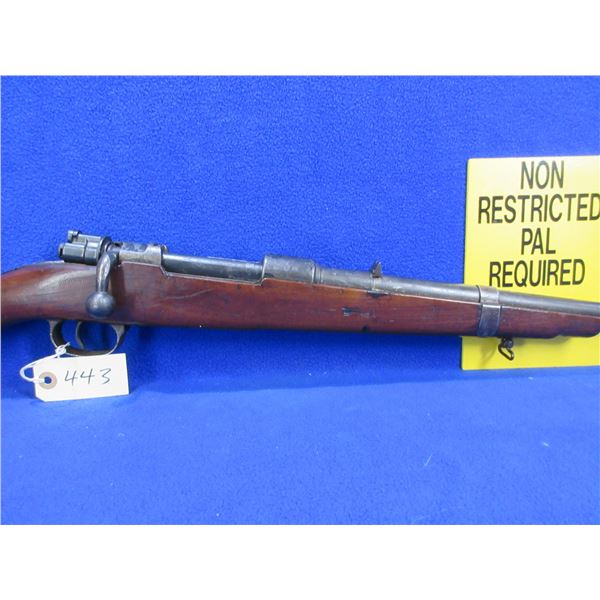 Non-Restricted - Unknown Mauser M98 in 8X57JS - This is a bolt action rifle with floor plate magazine, action appears to be in fair to good working order but stock is cracked in the wrist area and should be checked by a gunsmith before firing. Barrel is 23 1/2", rifling is fair, bluing is fair, has both sights, stock has a large crack on top of wrist area and a toe repair, length of pull is 13 1/4", brass butt plate good, comes with swivels. Ser # 7278
