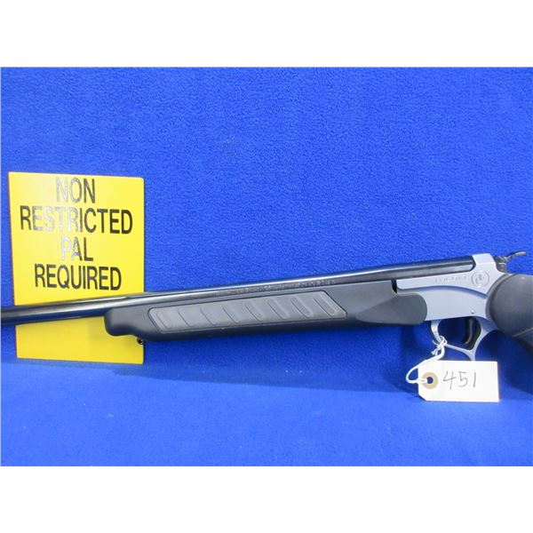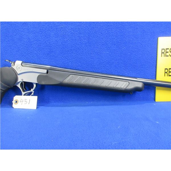 Non-Restricted - Thompson/Center Encore Pro Hunter in 30-06 Sprg - This single shot tip up hammer rifle is in very nice condition, action appears to be in very good working order. Fluted barrel is 28", rifling is very good, bluing is very good, has no sights but is drilled and tapped, synthetic stock and forearm are very good, length of pull is 14 1/2", rubber recoil pad very good, comes with swivel studs. Ser # 593369