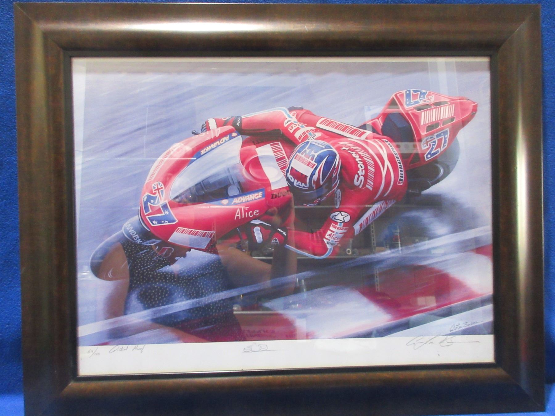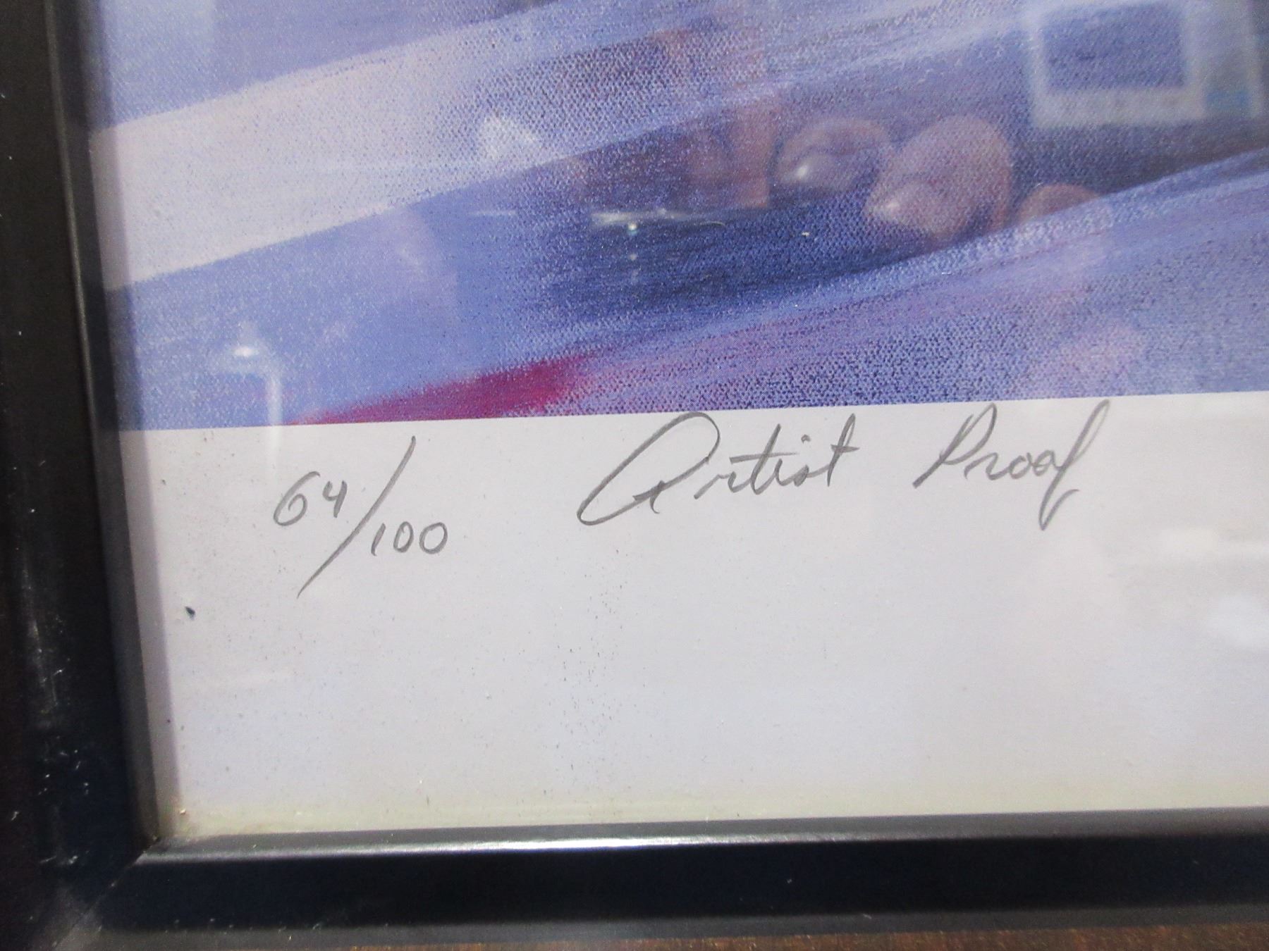 Lot 452 Framed Artist Proof - Motorcycle Racer by A. Lee Bivens, 64/100 - PICK UP ONLY