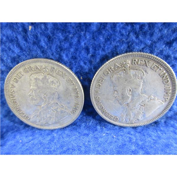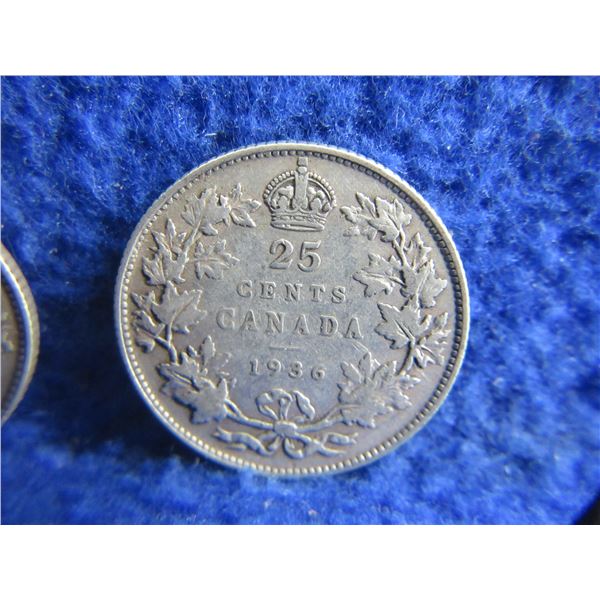 2 Canadian 25 Cent Coins - .800 Silver - 1929, 1936