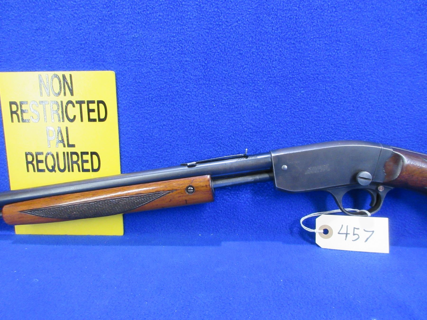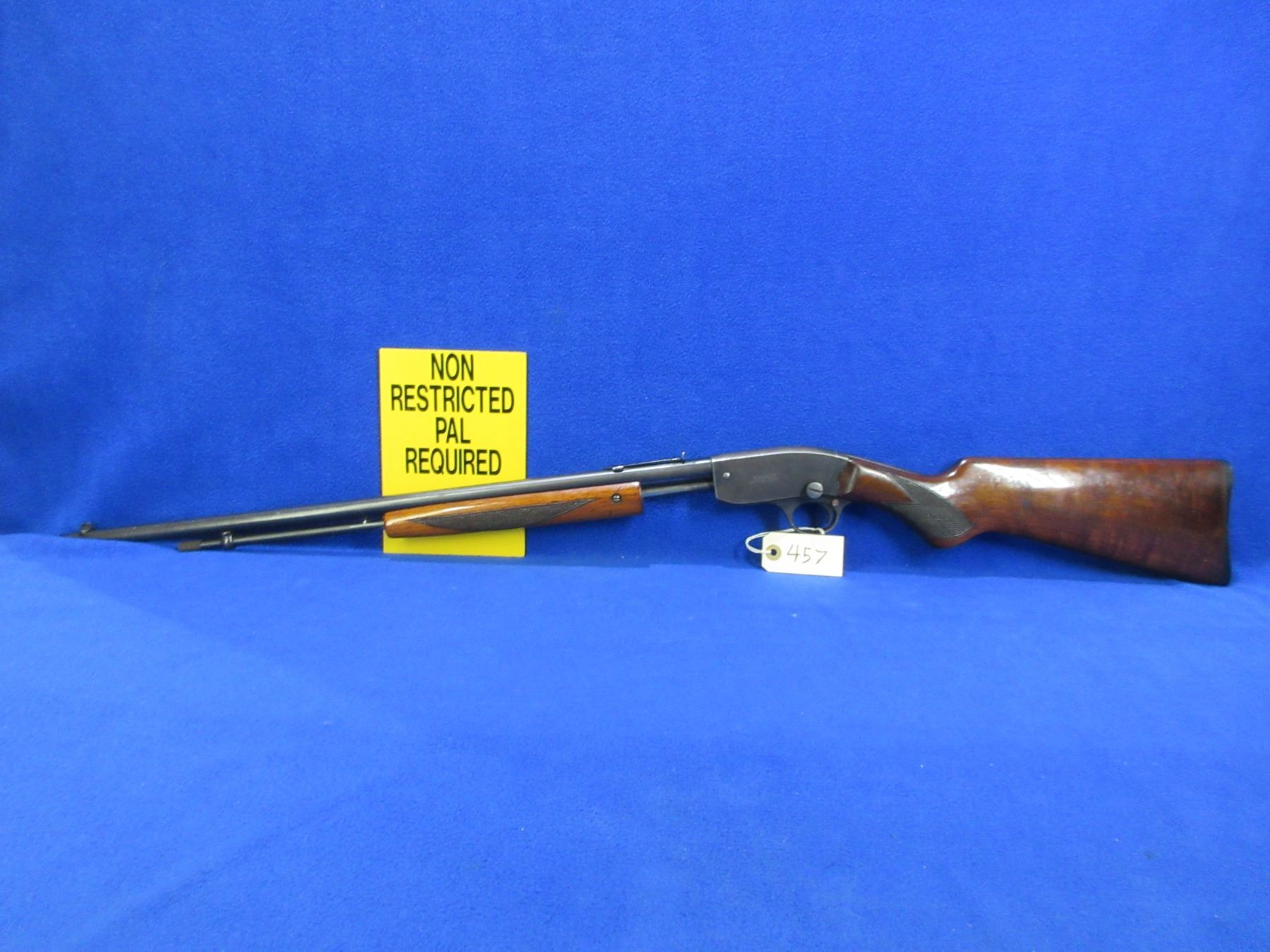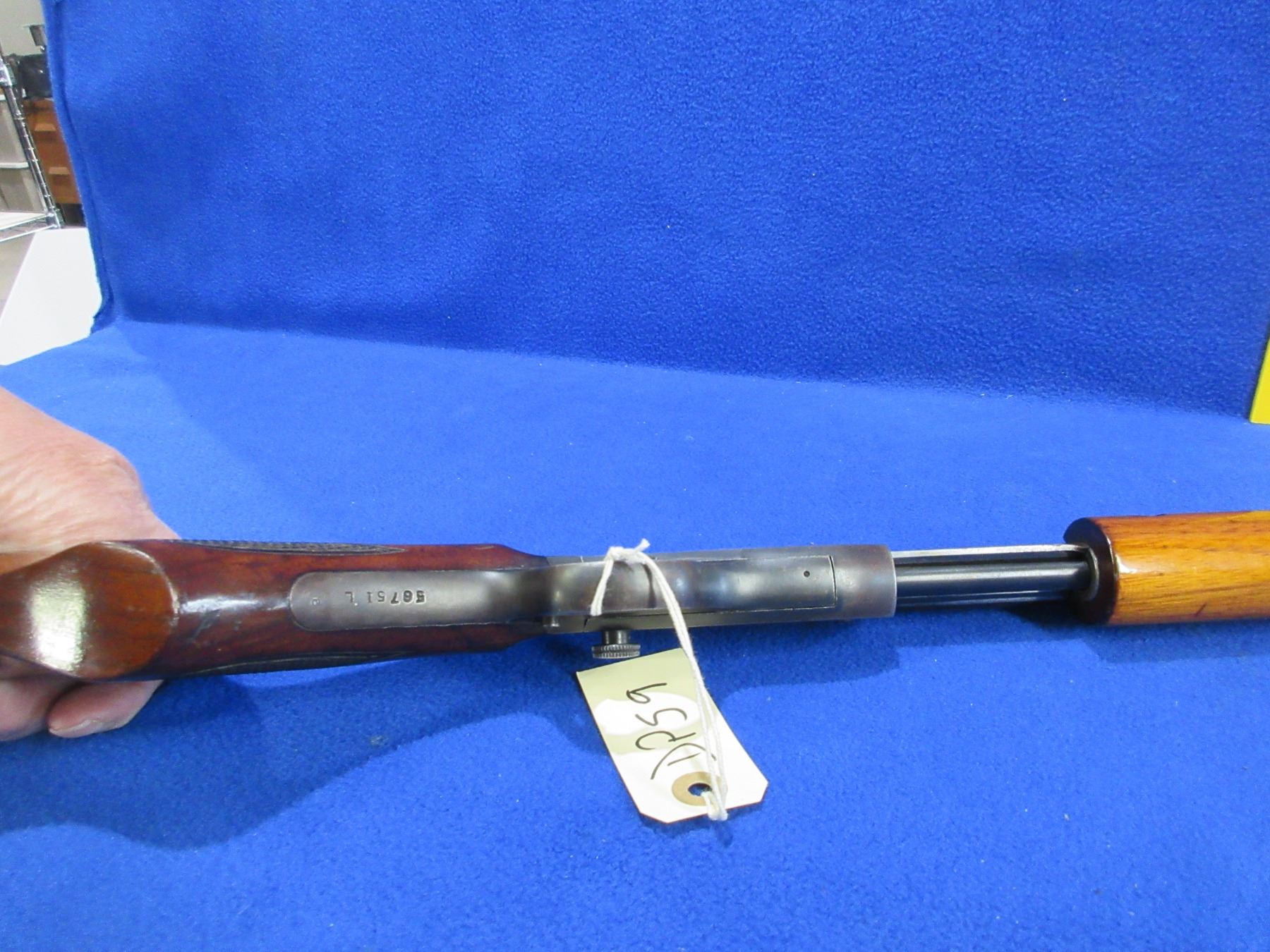 Non-Restricted - Savage Model 29-A in 22 S/L/LR - This is a pump action takedown rifle with tube magazine, action is in non working order as the bolt is missing but rifle is in overall very nice condition for age. Barrel is 24", rifling is good to very good, bluing is good, has both sights but rear sight is missing the ramp, stock is good with usage marks, forearm is good but appears incorrect as it does not match the stock, length of pull is 13 3/4", butt plate good. Ser # 56751L