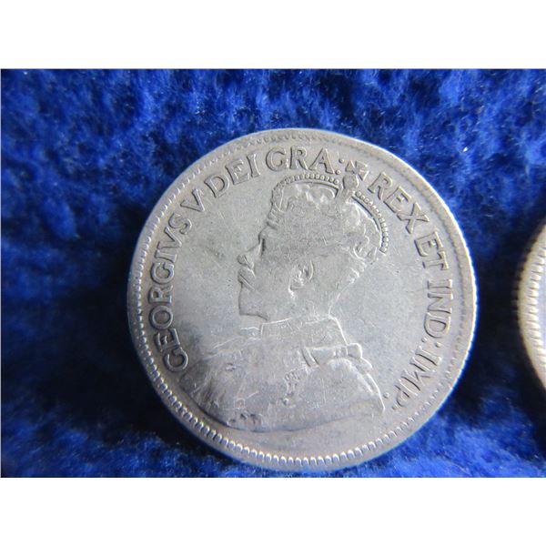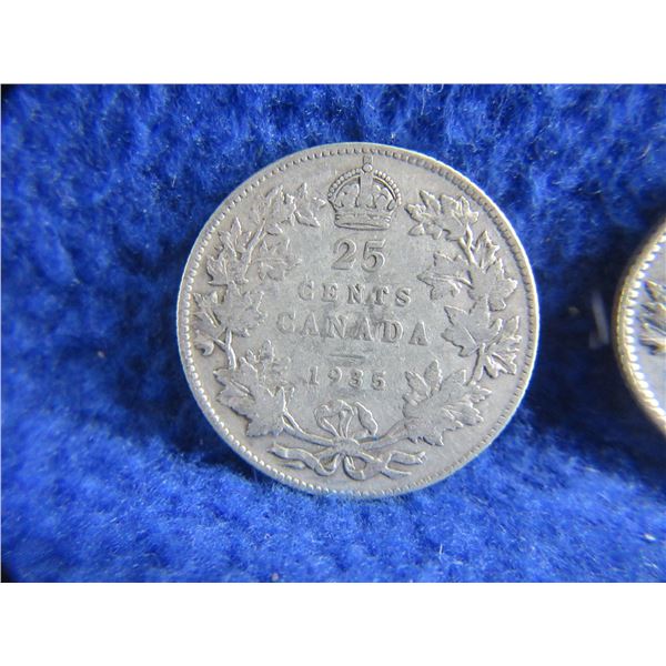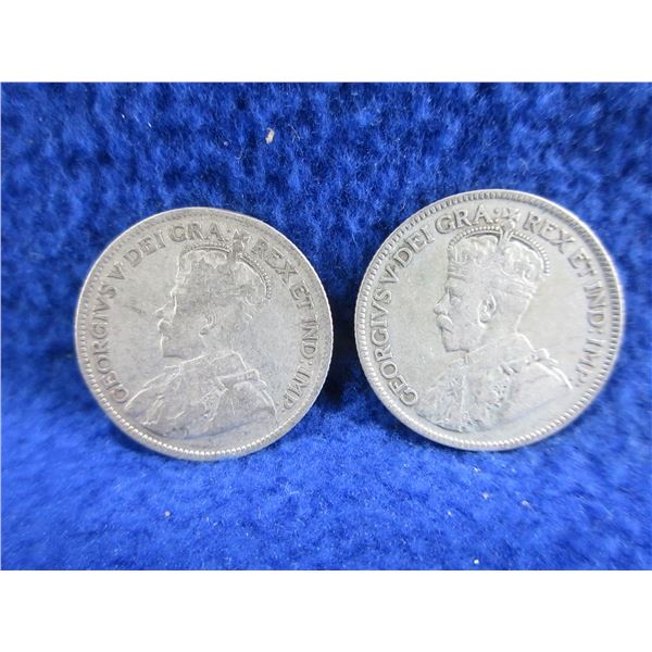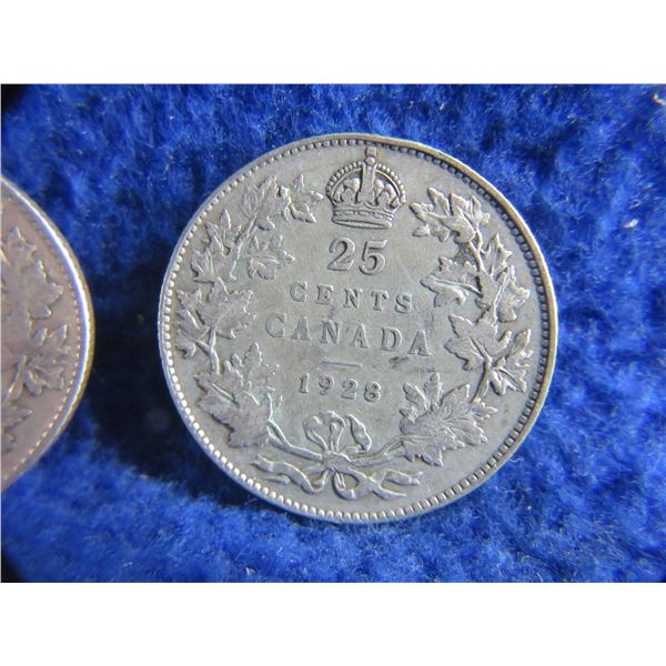 2 Canadian 25 Cent Coins - .800 Silver - 1928, 1936