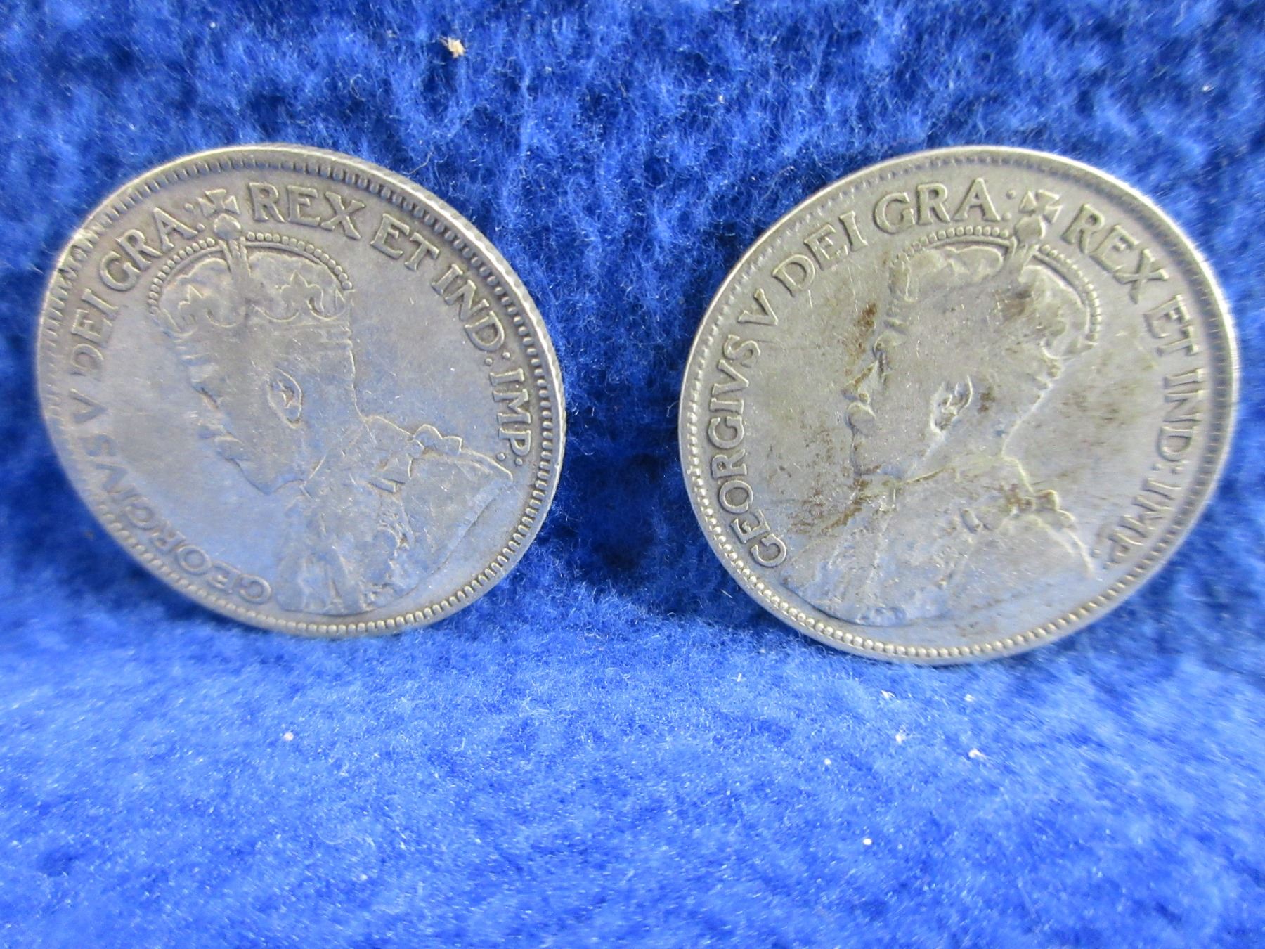 Lot 462 2 Canadian 25 Cent Coins - .800 Silver - 1920, 1931