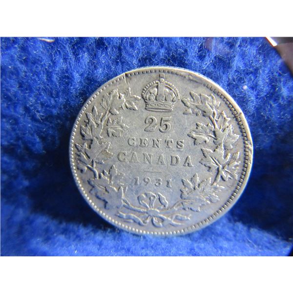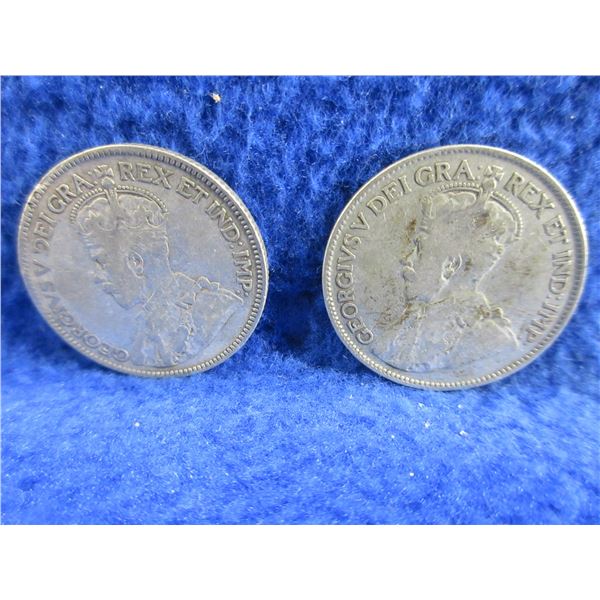 2 Canadian 25 Cent Coins - .800 Silver - 1920, 1931