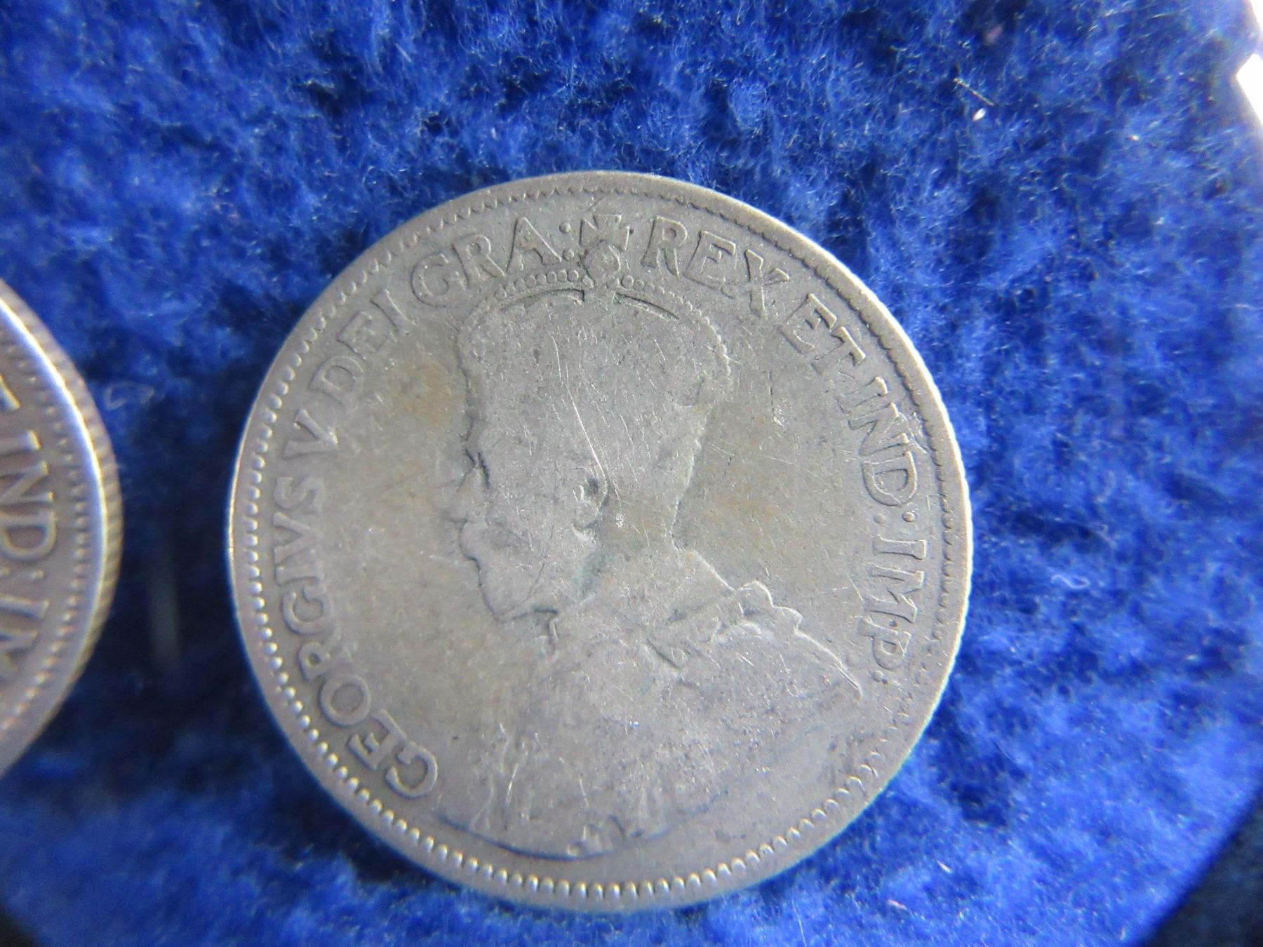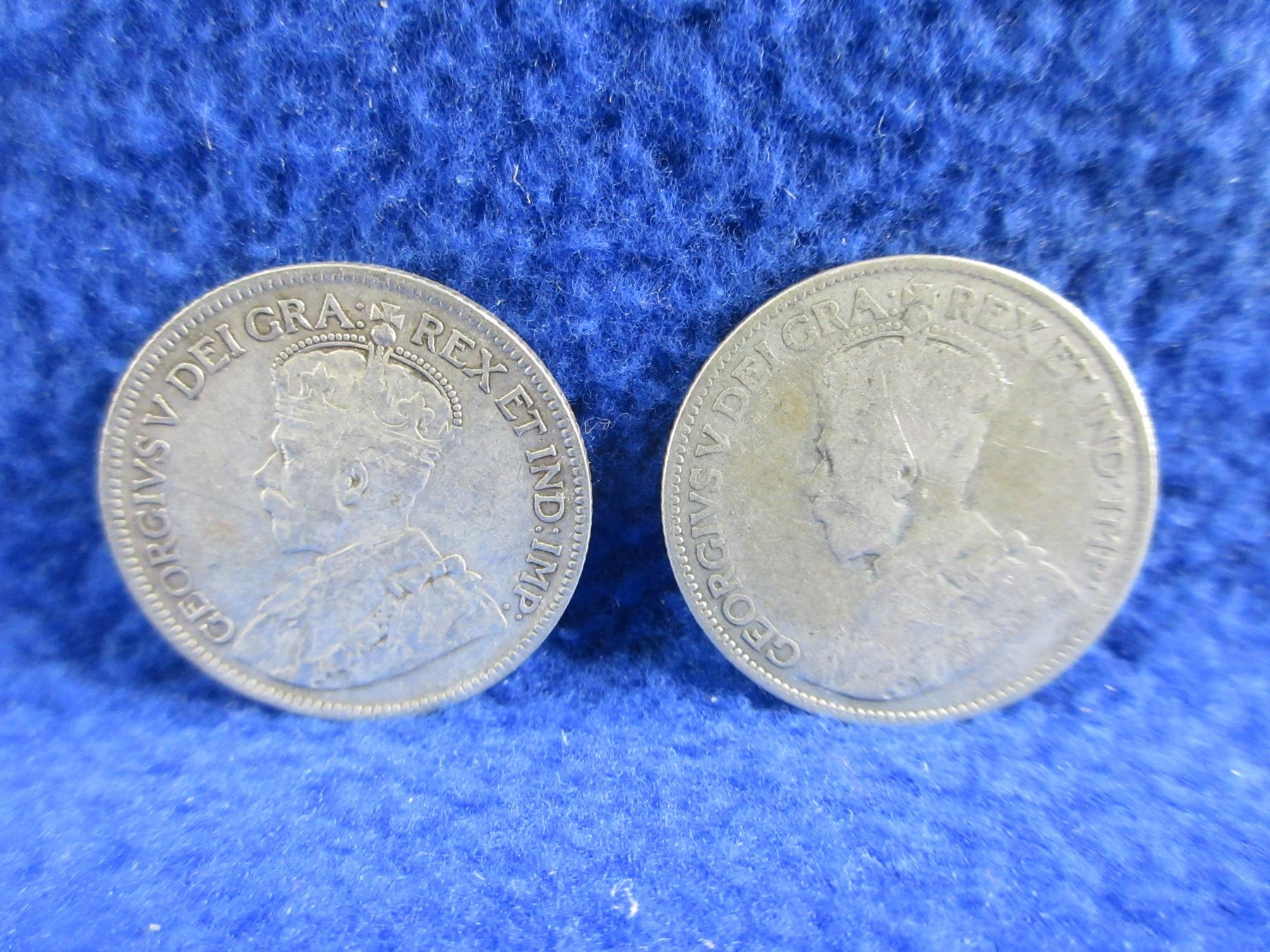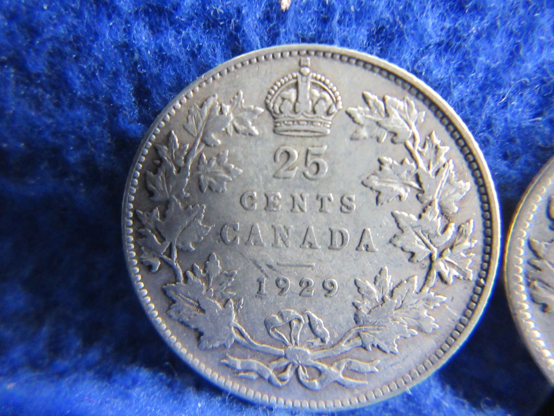 Lot 465 2 Canadian 25 Cent Coins - .800 Silver - 1929 & 192? (Illegible)